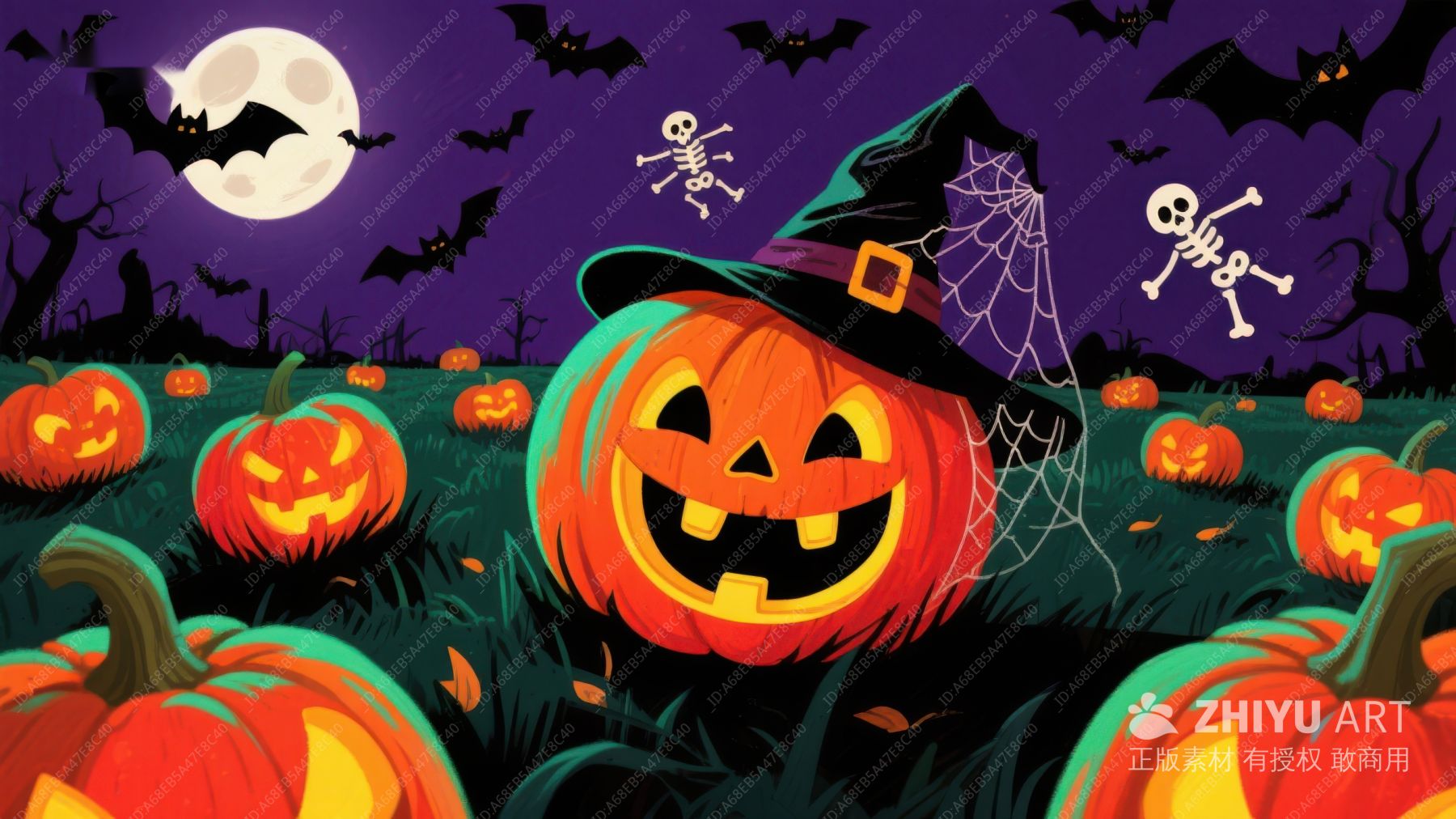 万圣节南瓜灯与幽灵蝙蝠