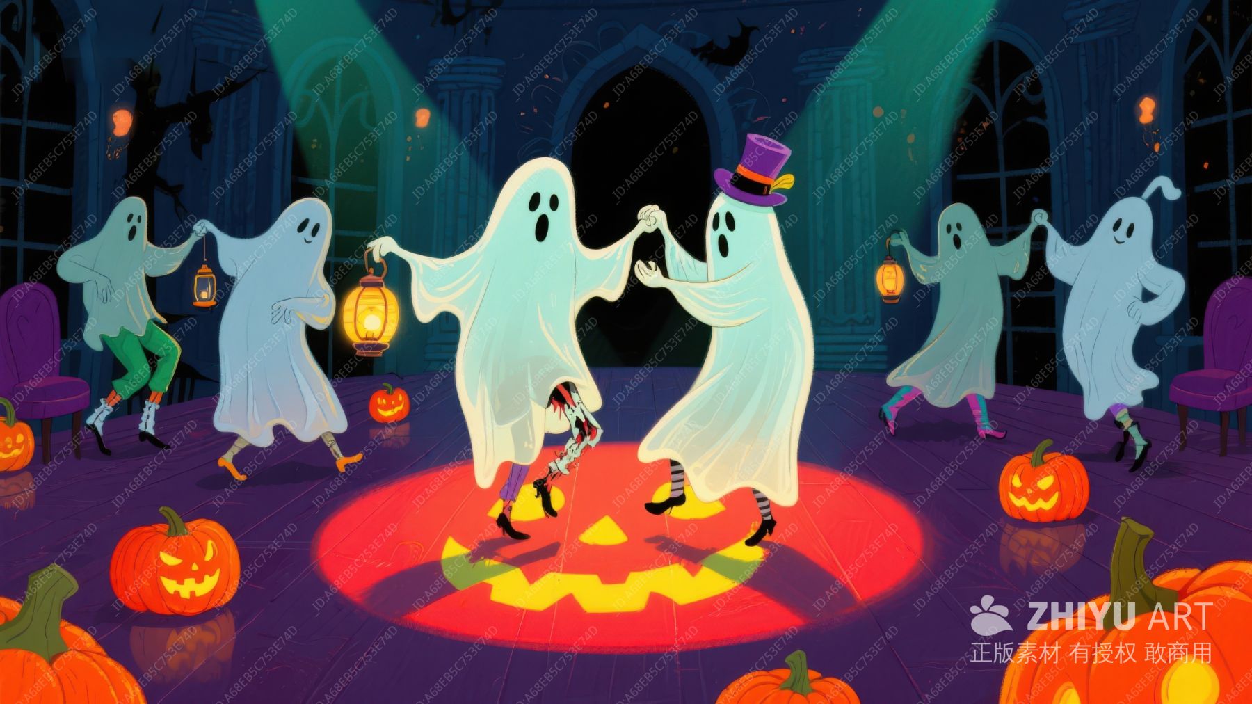 万圣节幽灵舞会欢乐场景