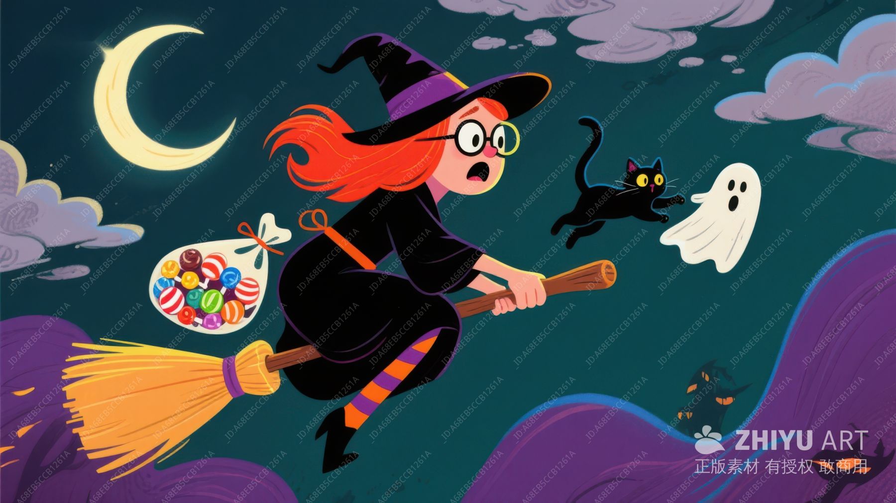 万圣夜飞行:女巫与骷髅的奇幻之旅