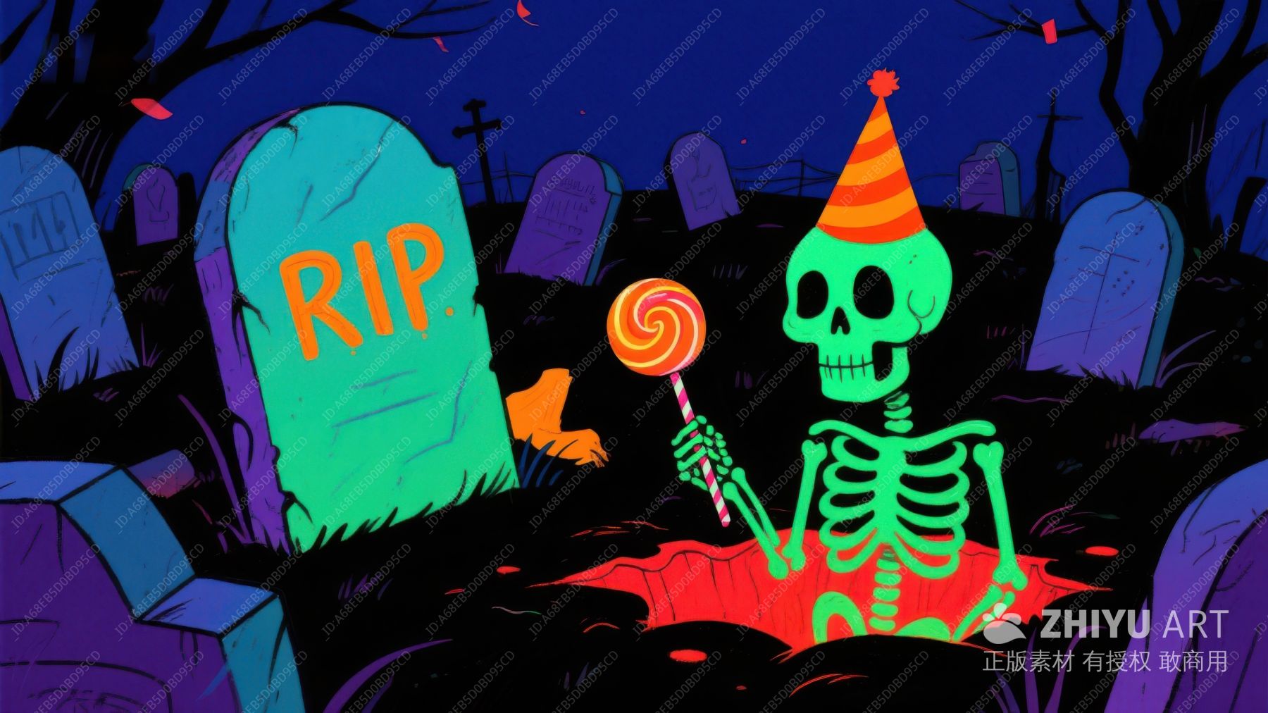万圣夜骷髅手持糖果棒