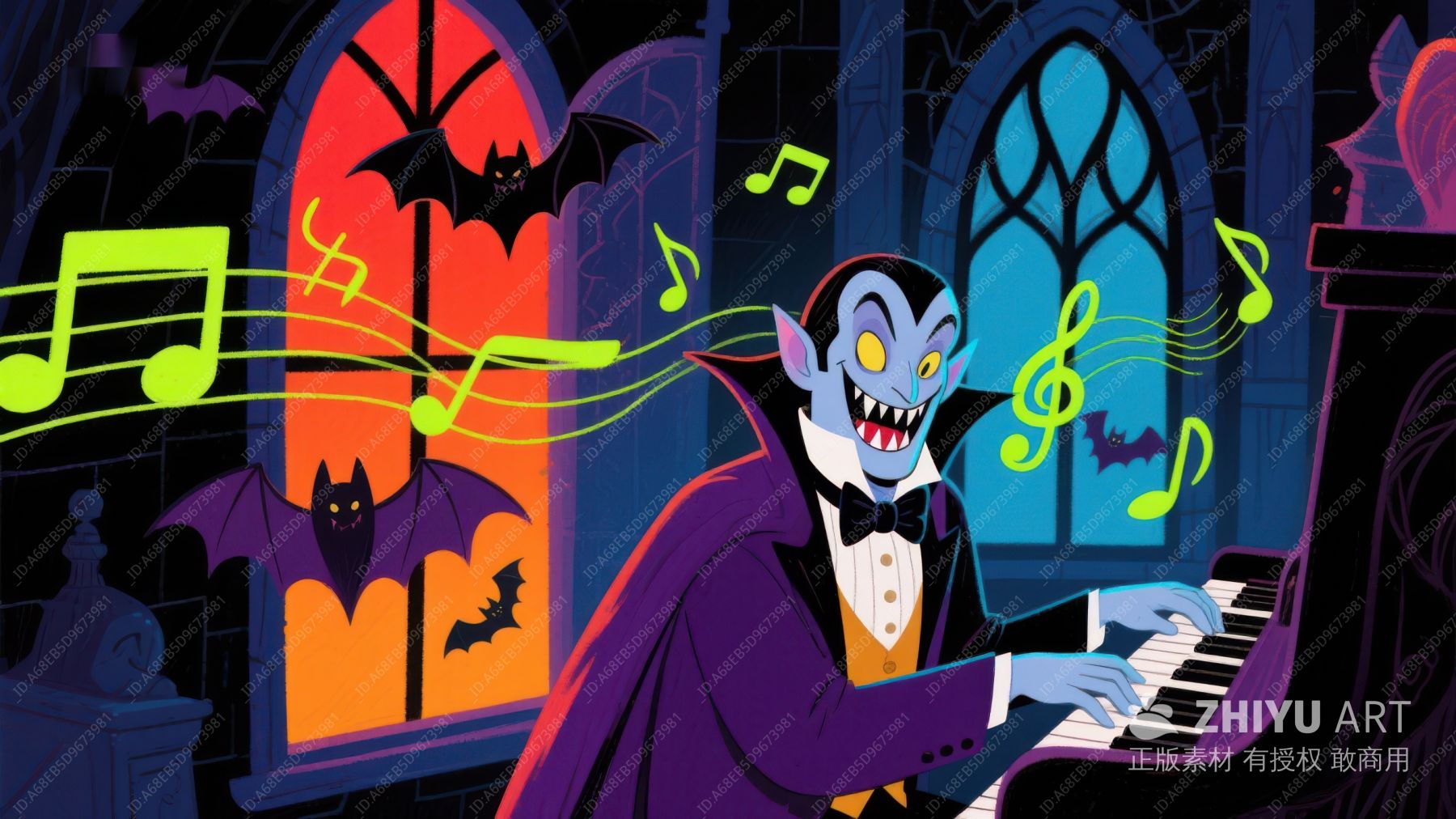吸血鬼弹吉他,蝙蝠环绕南瓜灯