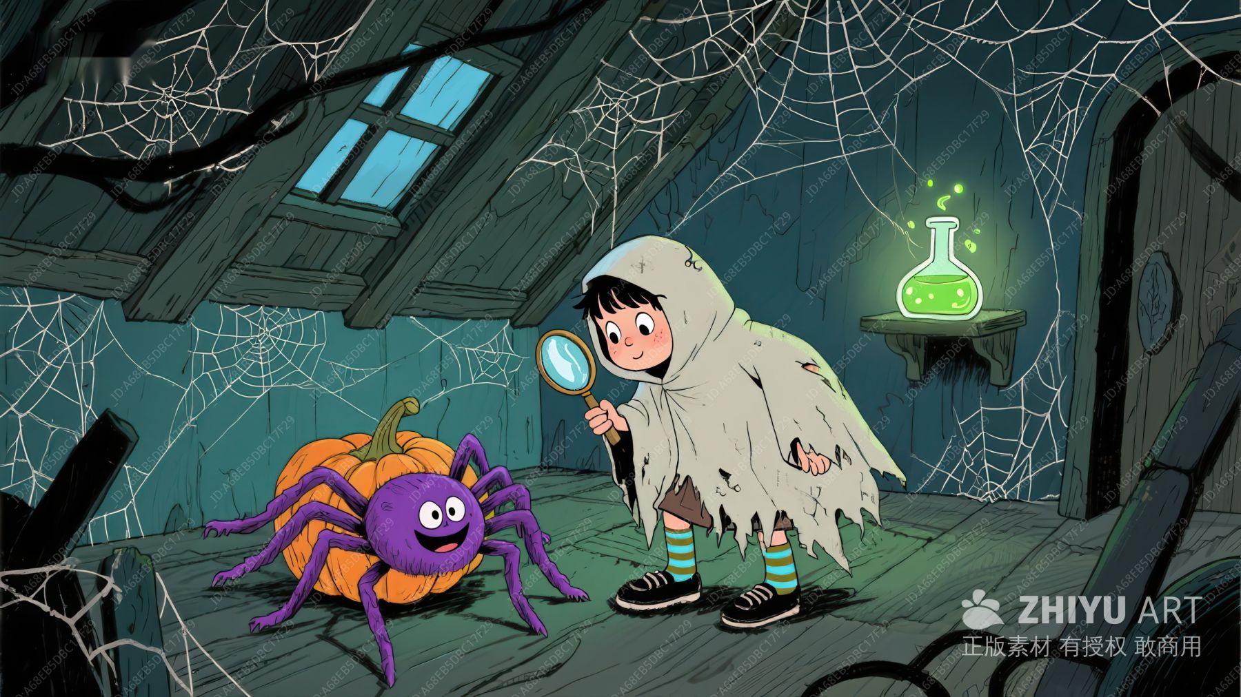 万圣节夜景:南瓜、幽灵与蜘蛛的奇幻冒险