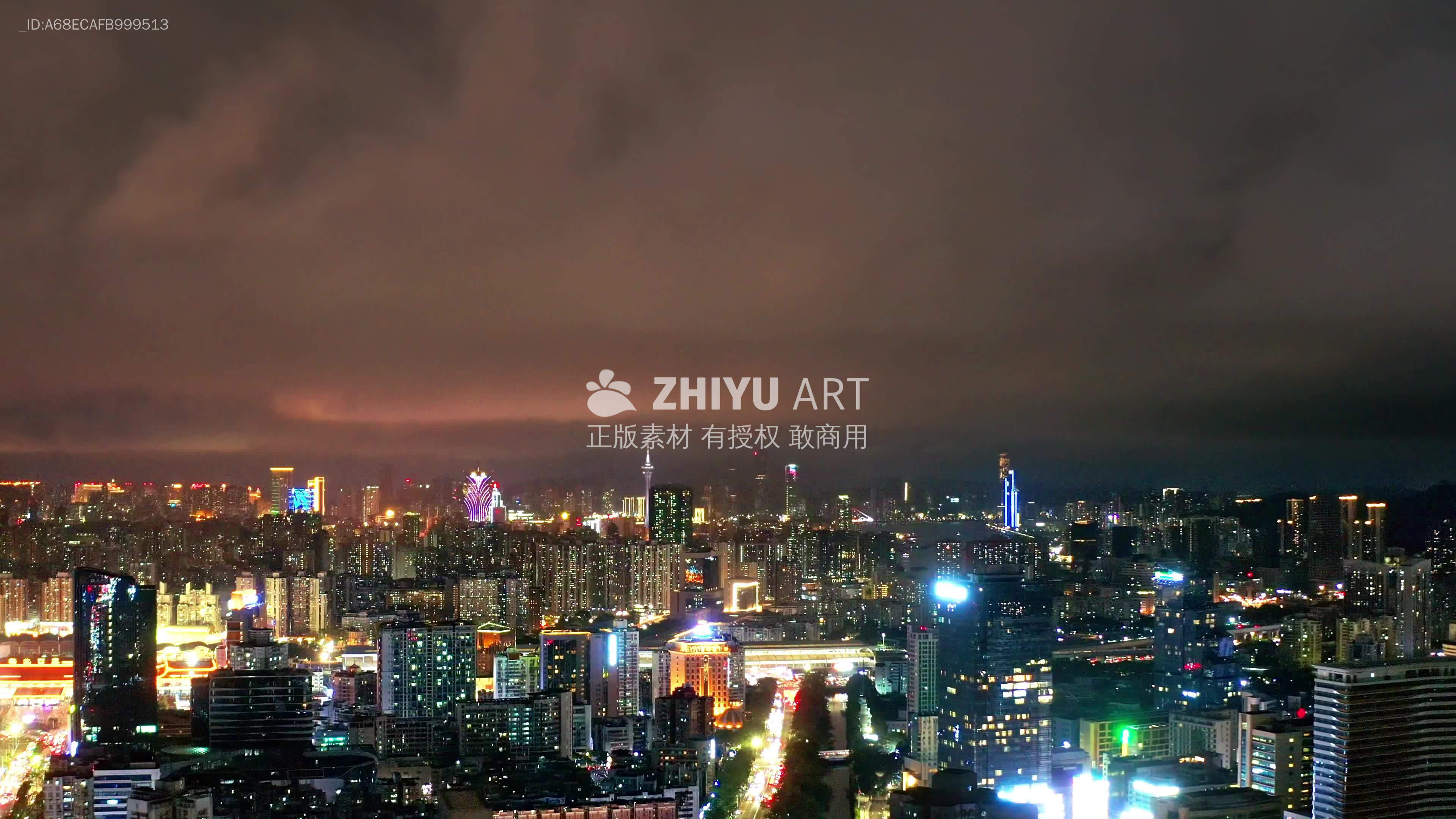 澳门城市夜景灯光航拍