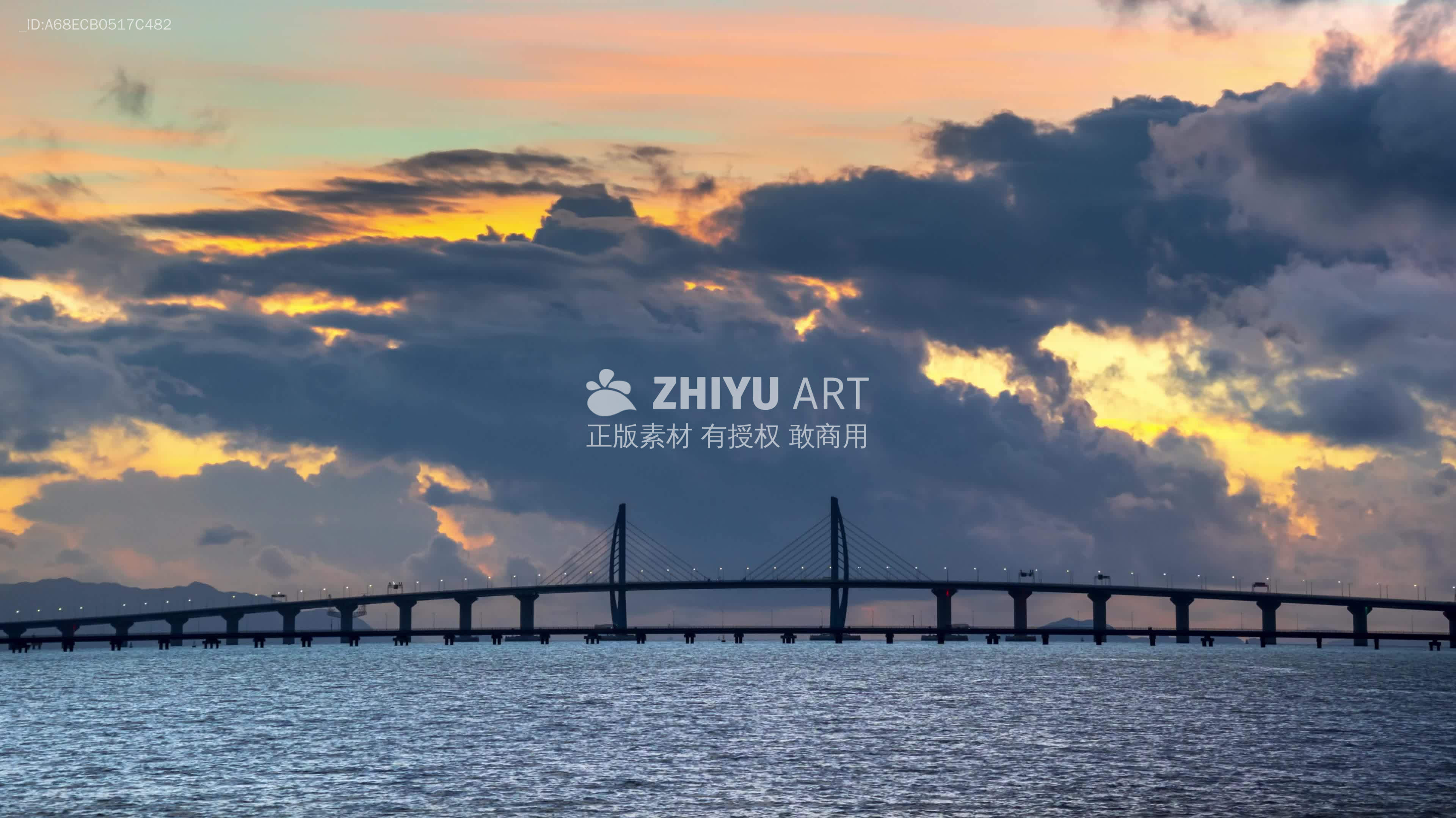 港珠澳大桥清晨色彩变幻及水面倒影素材