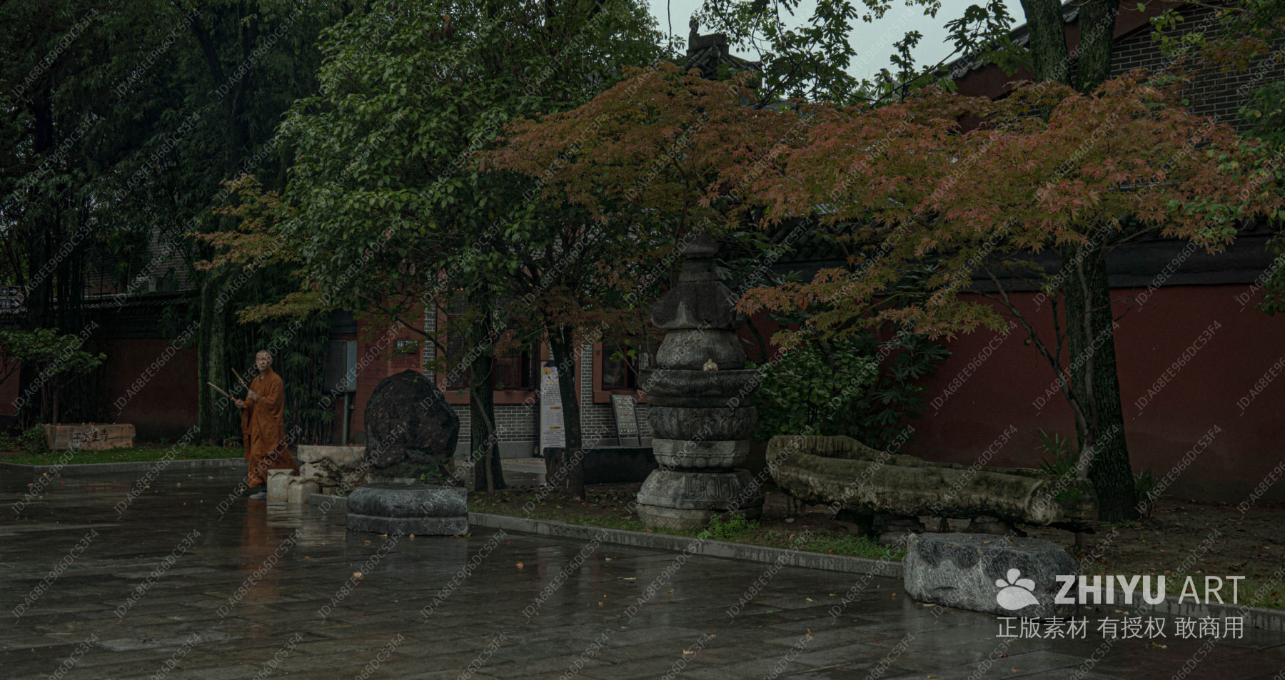 秋日寺庙僧影