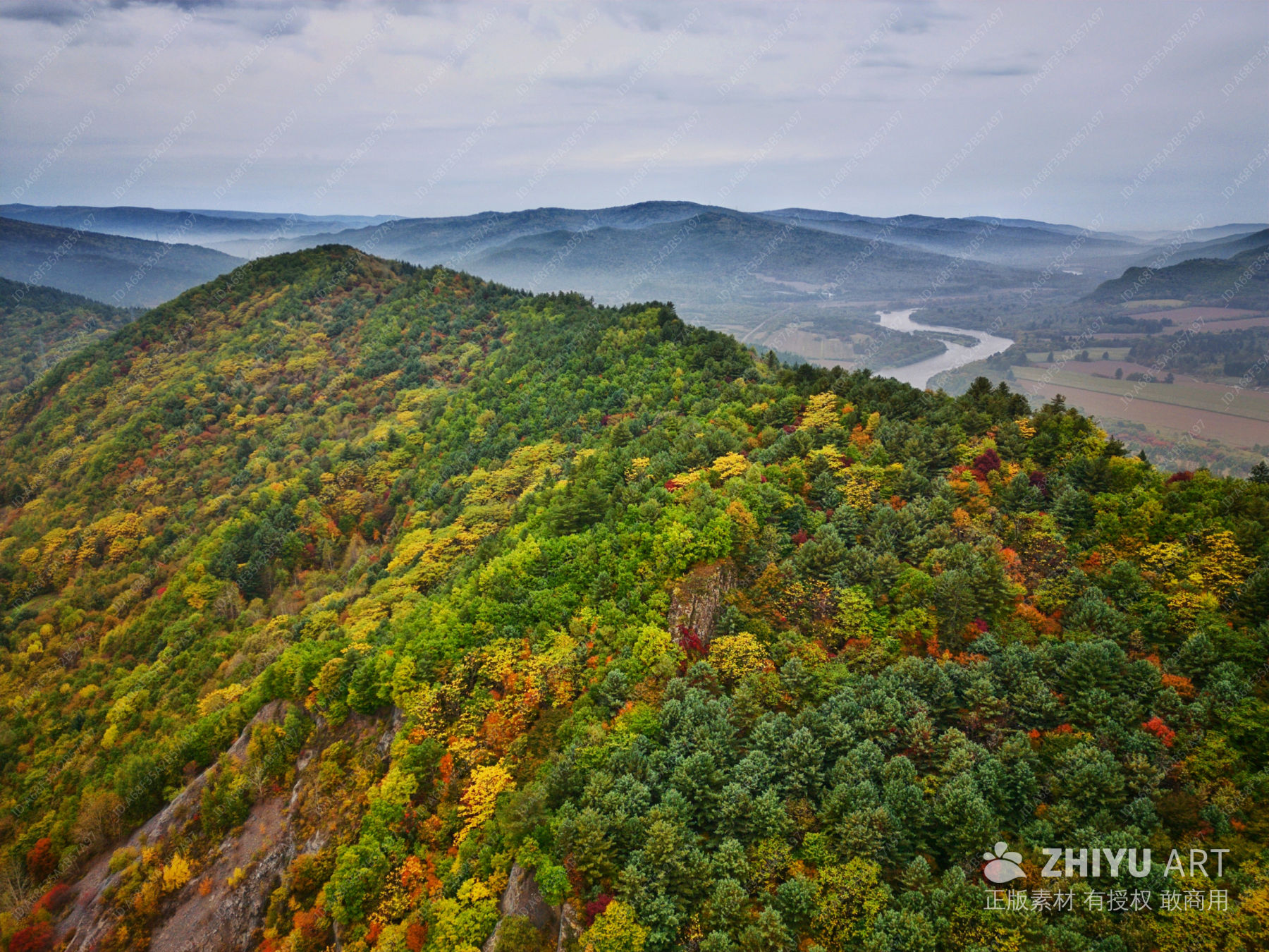 秋天 秋色 云雾 云雾缭绕 山 山峦 五花山 天空 航拍 秋色 秋韵 北国之秋 树 山林 树林