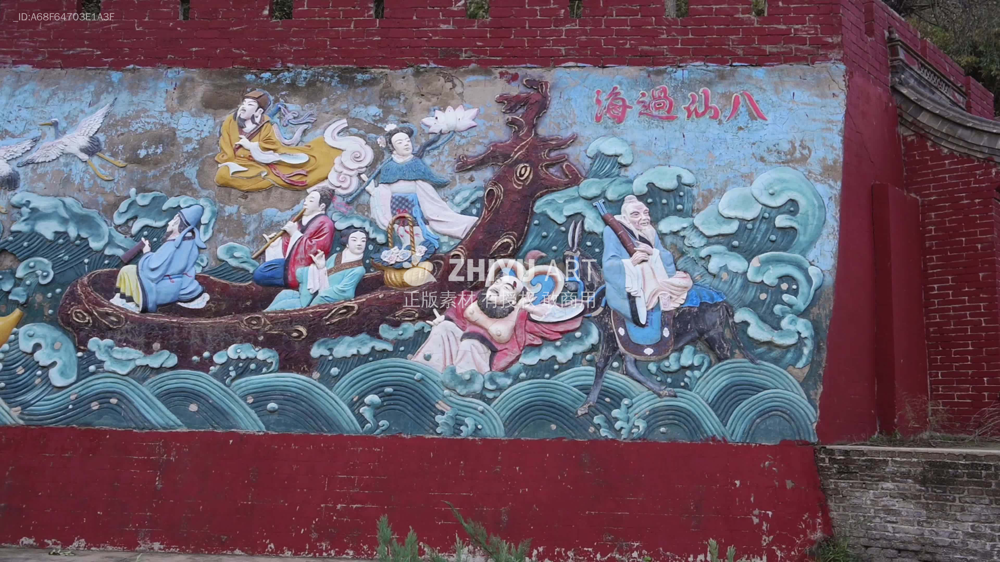 彩色浮雕故事壁画《八仙过海》