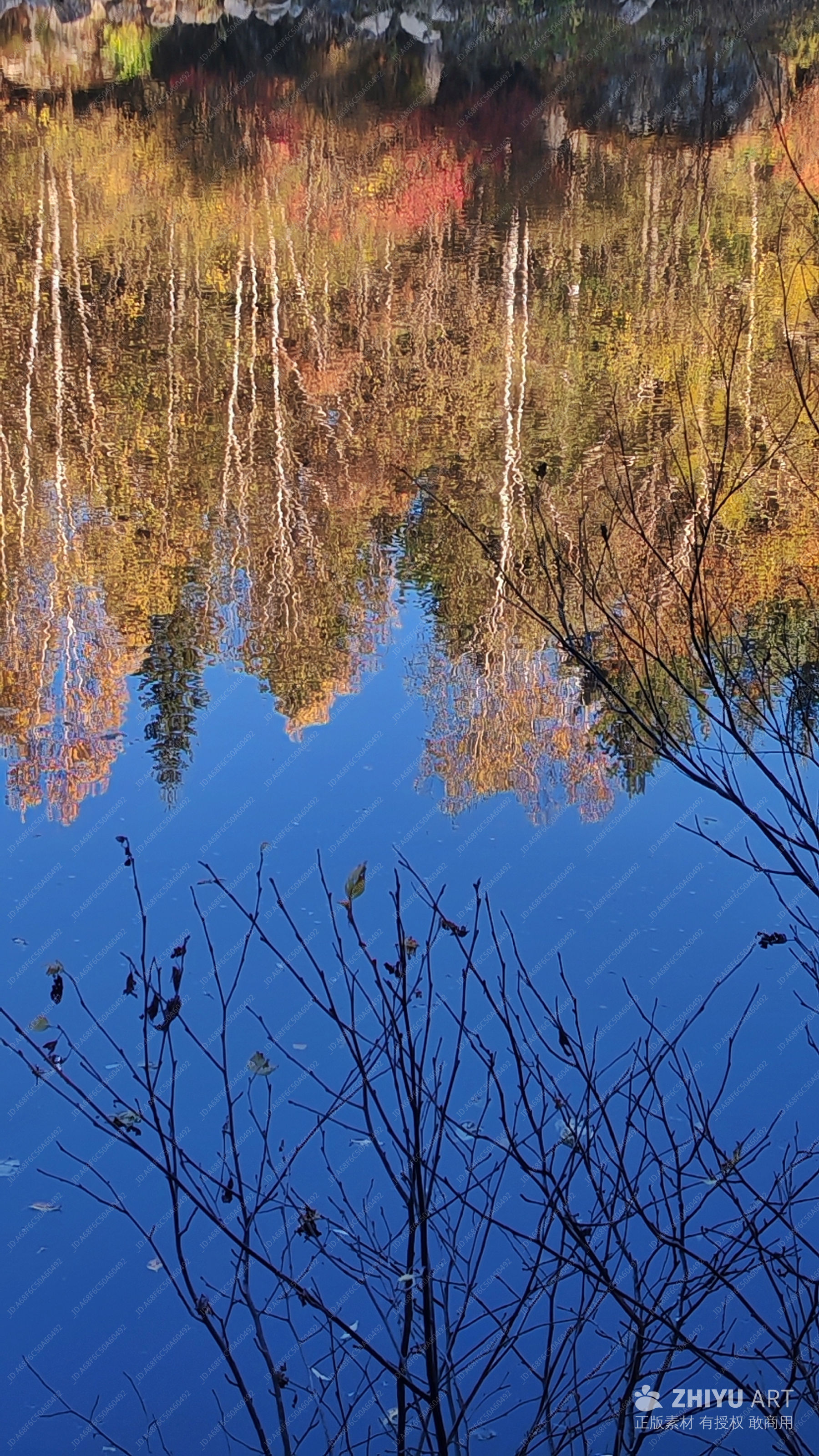 湖水像块剔透的蓝玻璃,把岸边秋意都揉碎了映在里头。金黄、橙红的树影在水面上晃啊晃,像被风吹皱的油画,连蓝天都跟着漾出细碎的波纹。前景的枯枝黑瘦瘦地伸着,倒给这满目的柔色添了几分利落的轮廓。明明是静止的湖,却因为这晃动的倒影,透着股流动的诗意——仿佛秋的色彩,都被这汪水温柔地接住。#秋日随手拍