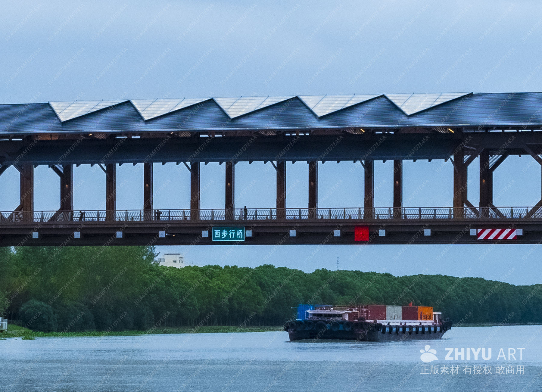 太阳能桥下的货运河景