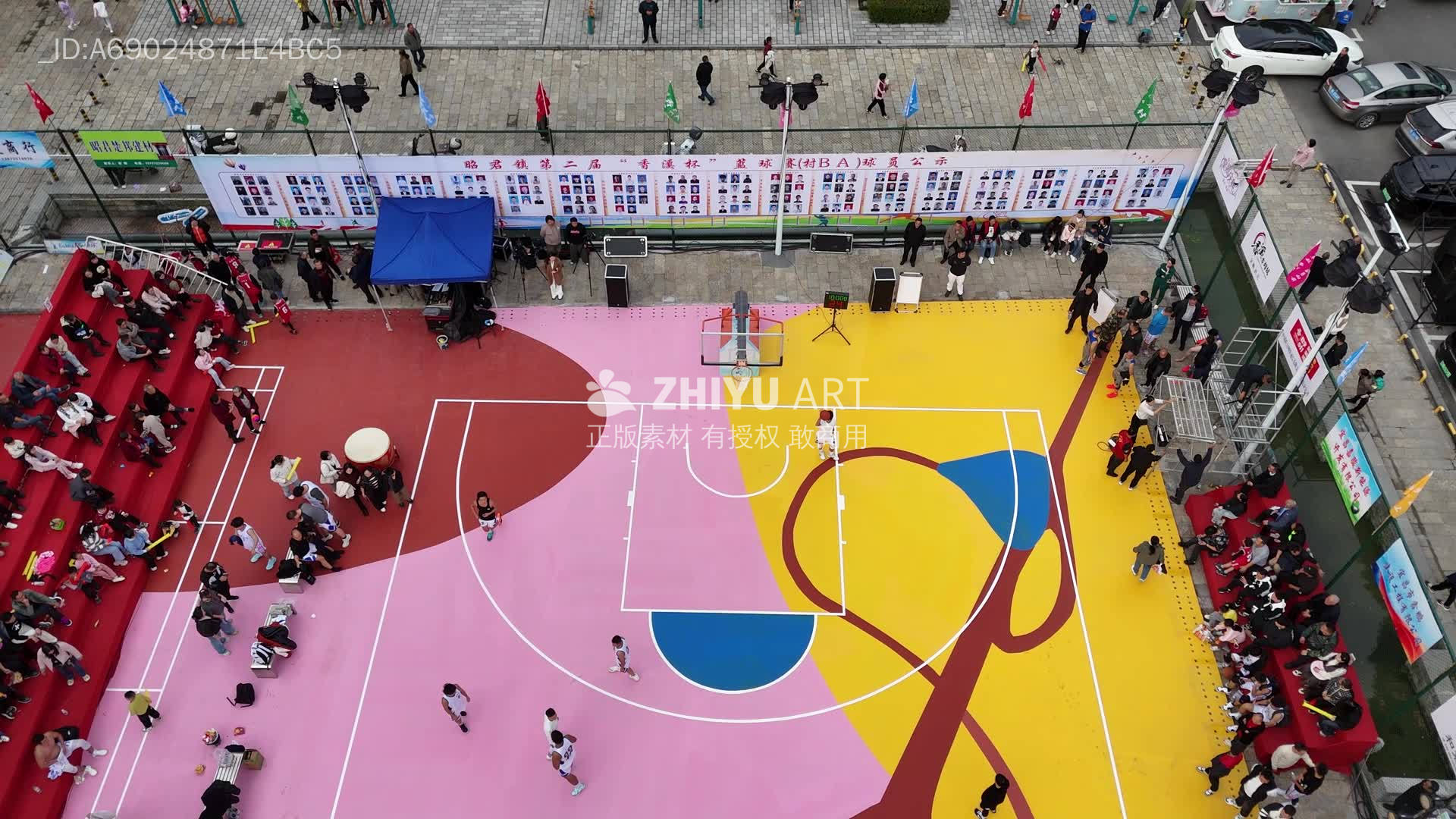 彩色篮球场航拍比赛场景
