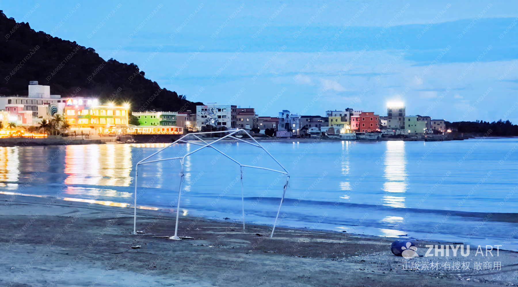 黄昏海滨的城市夜景