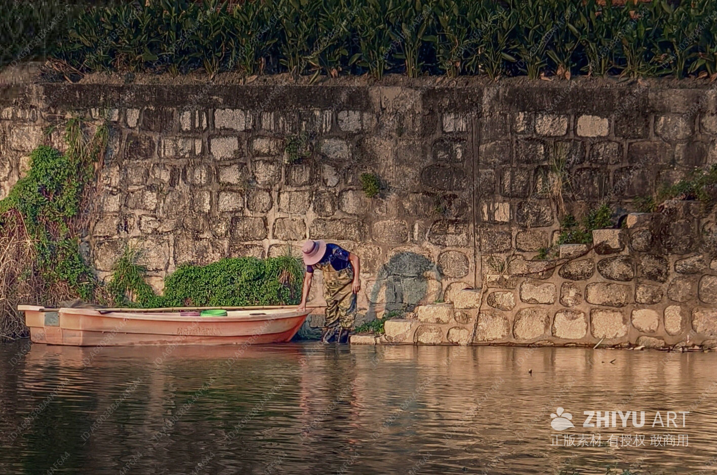 渔夫与小船的傍晚时光