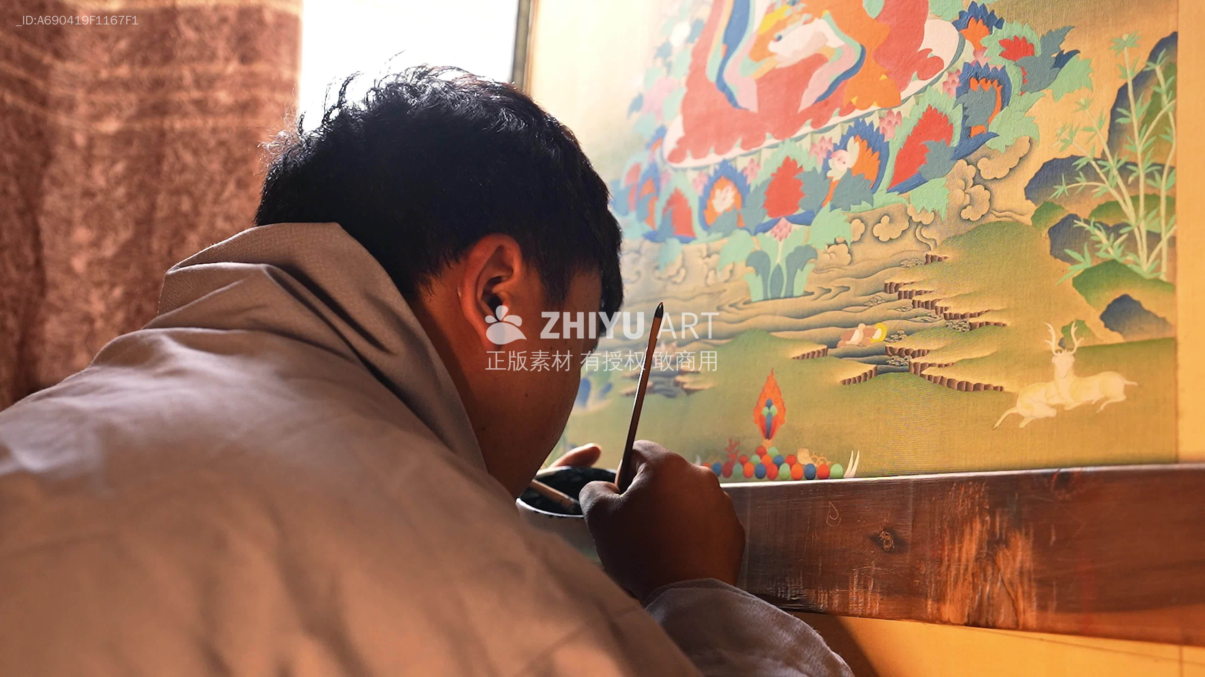 唐卡艺人创作过程