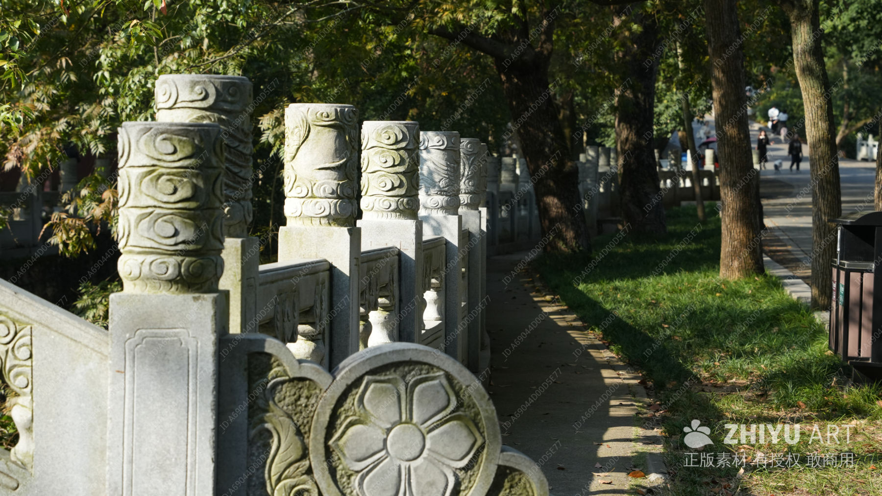 古朴石栏杆旁的宁静小径