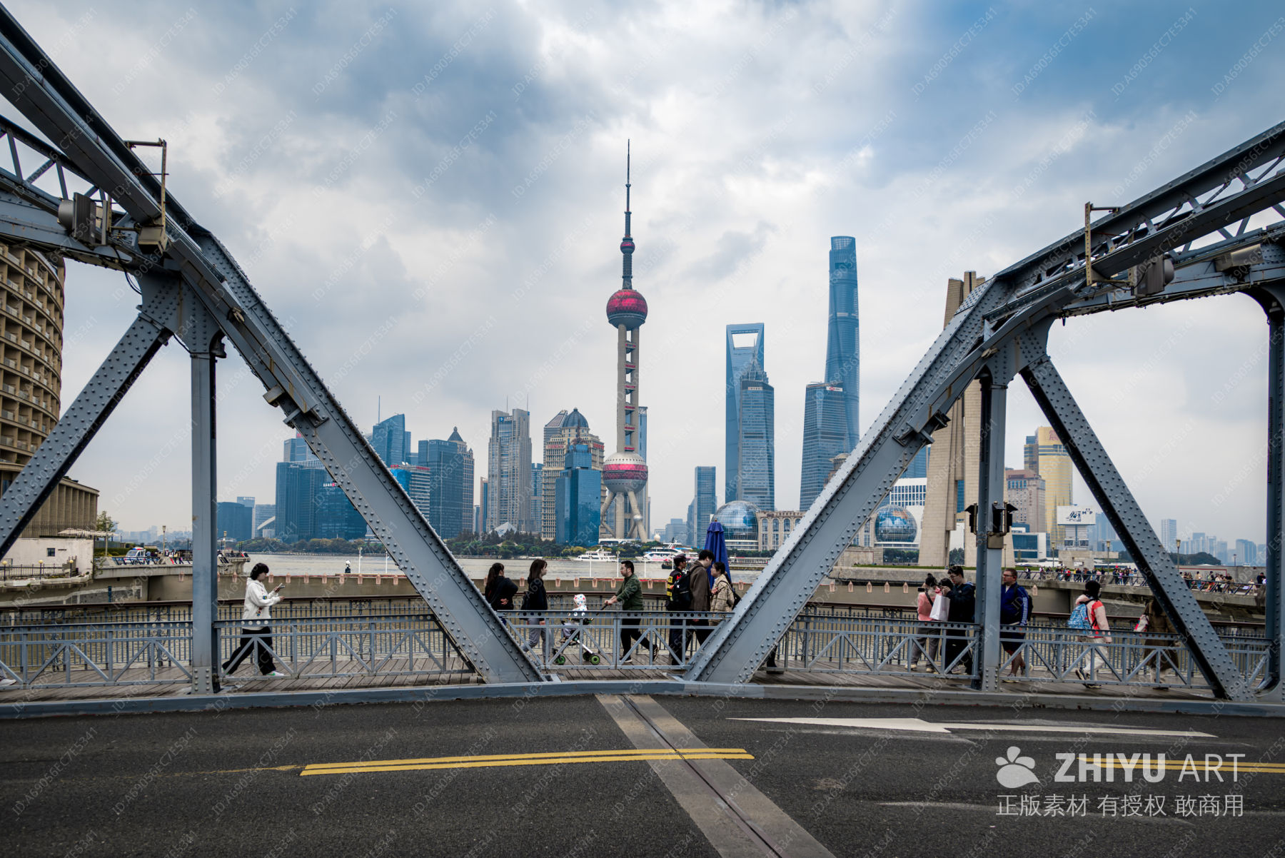 上海外滩铁桥与陆家嘴天际线