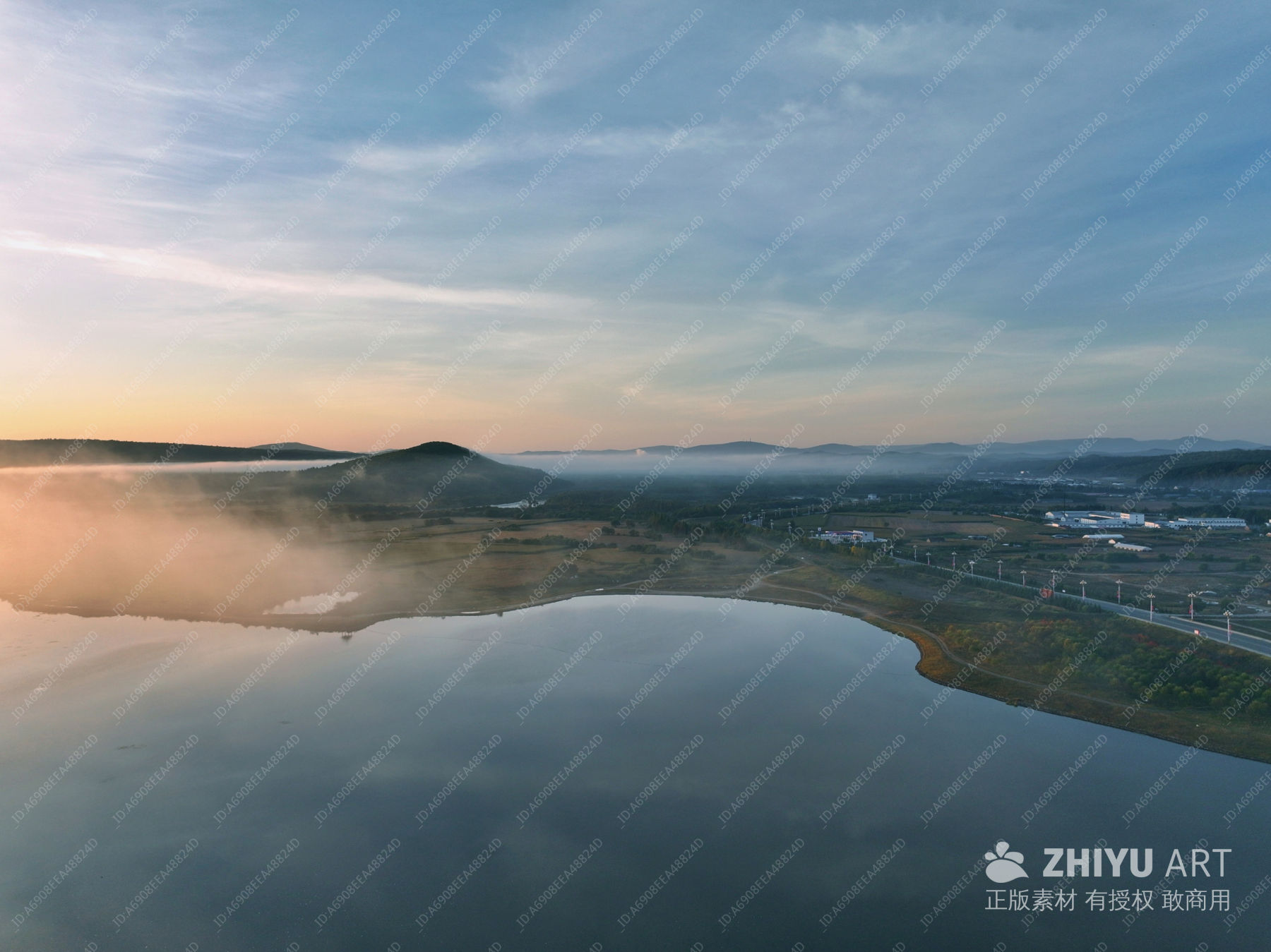 湖光山色 晨雾织幽