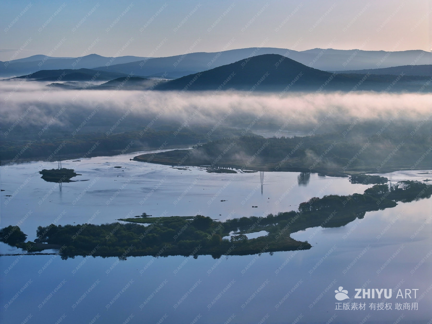 航拍云雾缭绕湖泊美景湖光山色自然风光 22