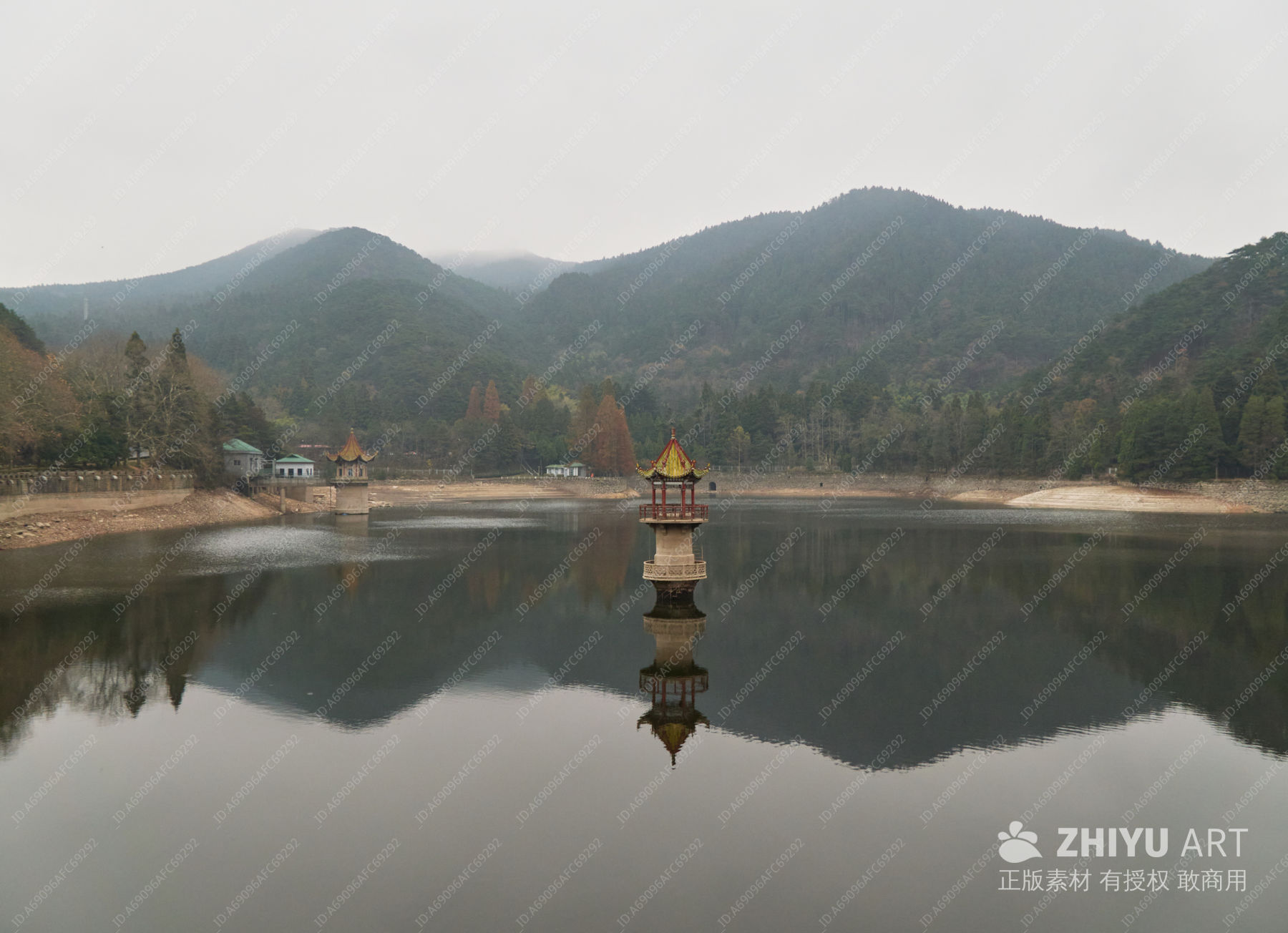 湖泊 亭子 山林 倒影 宁静 自然 传统建筑 阴天 旅游景点 摄影素材 水域 水资源 河流 高地 水库 河岸 建筑 山 山中避暑地 自然景观 地标建筑 江西 九江 芦林湖 湖心亭 山水 旅游 旅行 户外 环境 生态 云雾 庐山 风光 人文 景观 湖景