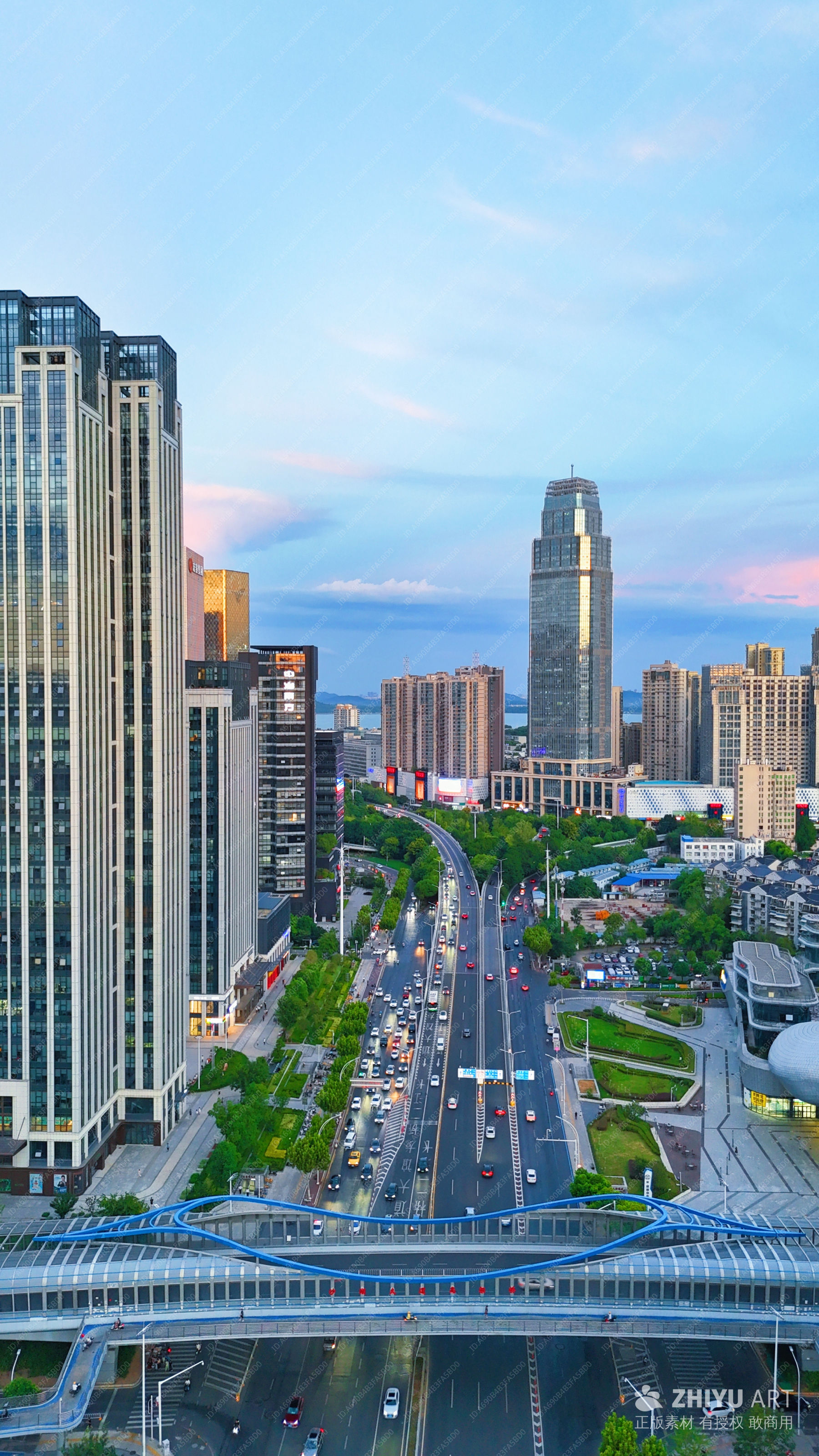 都市桥梁与繁华街景