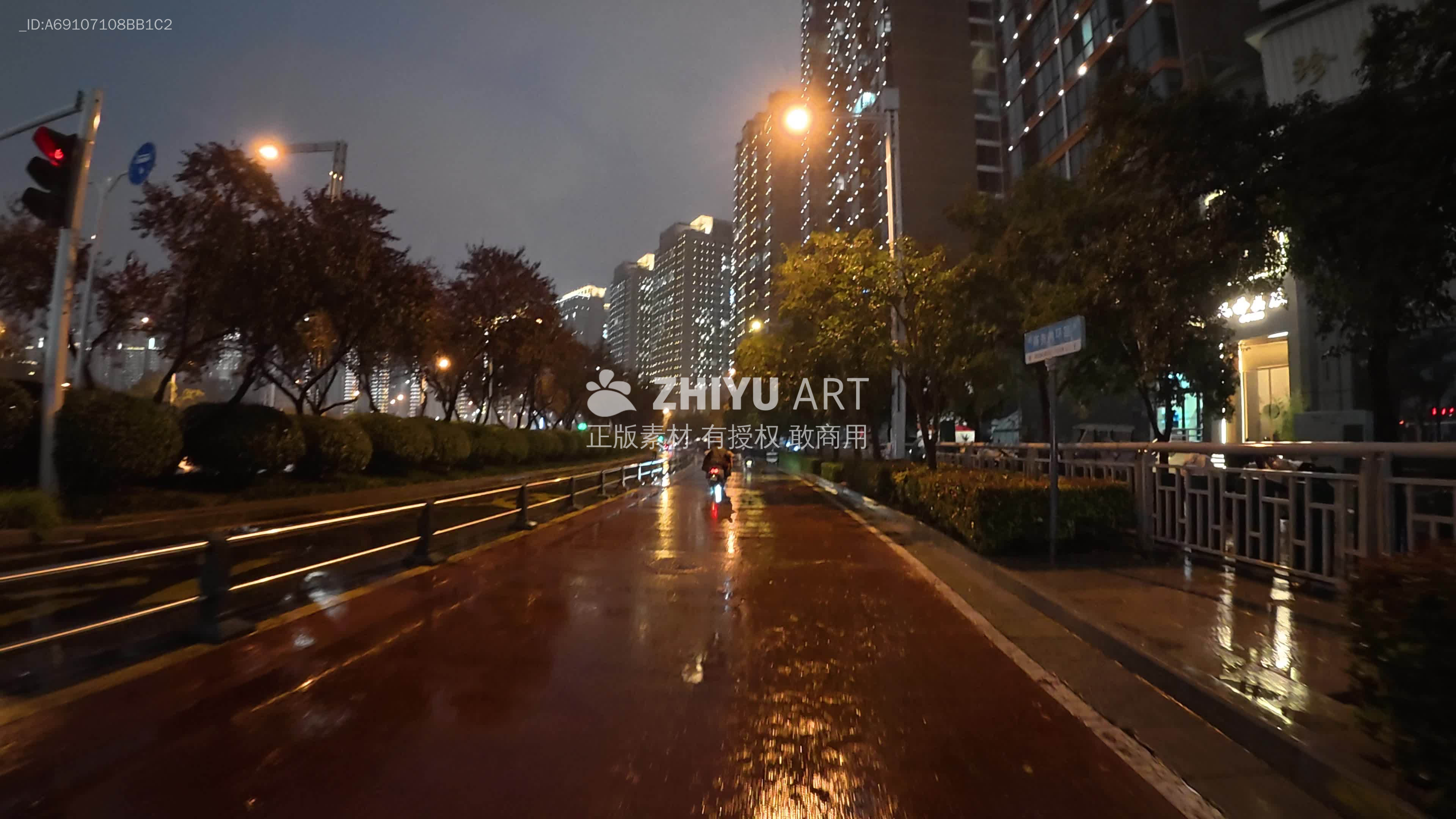 雨夜街道灯火辉煌
