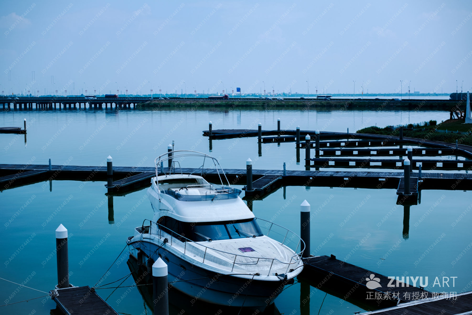 静谧码头的白色游艇