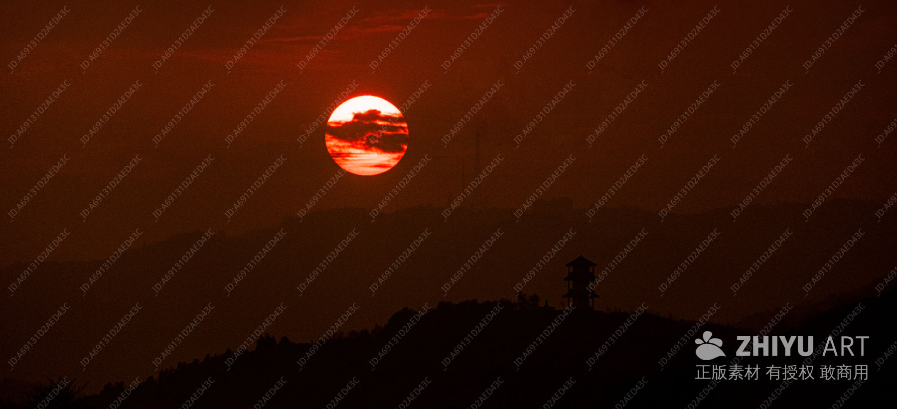 红日映山塔