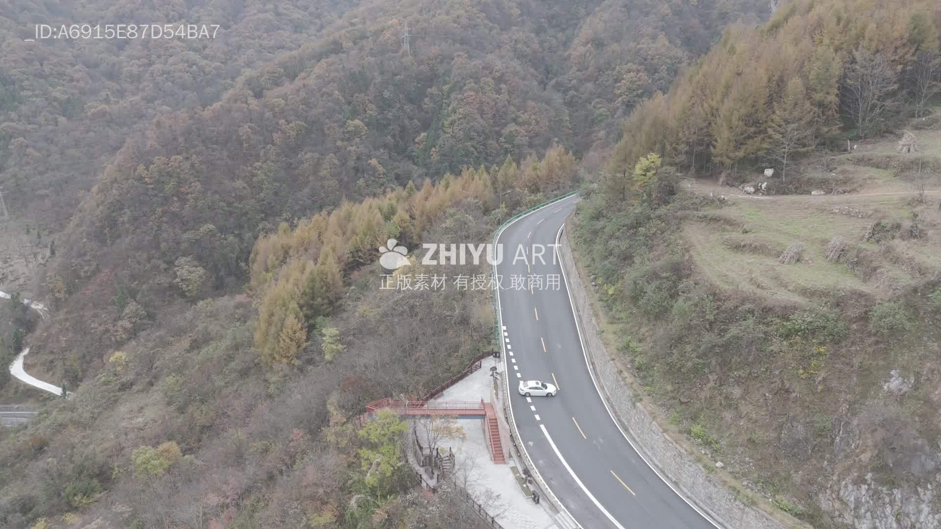 秋日山间公路航拍
