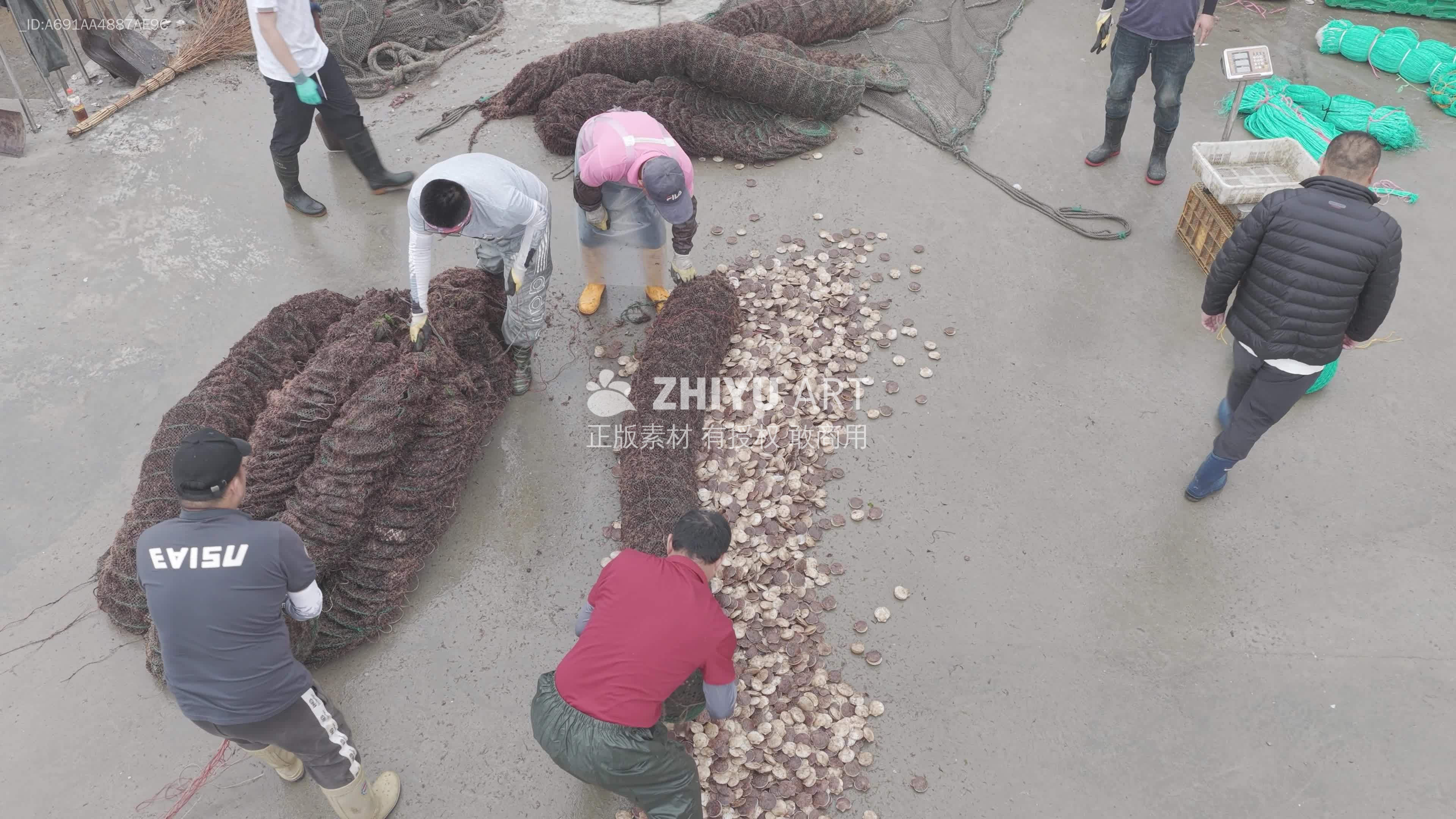 渔民扇贝分拣作业