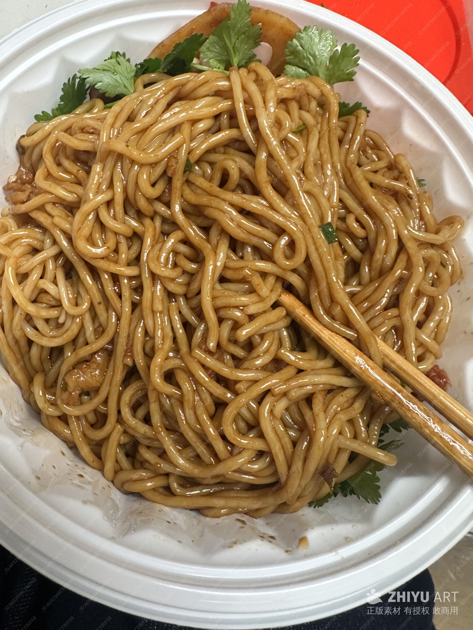 美味方便面配香菜与泡菜