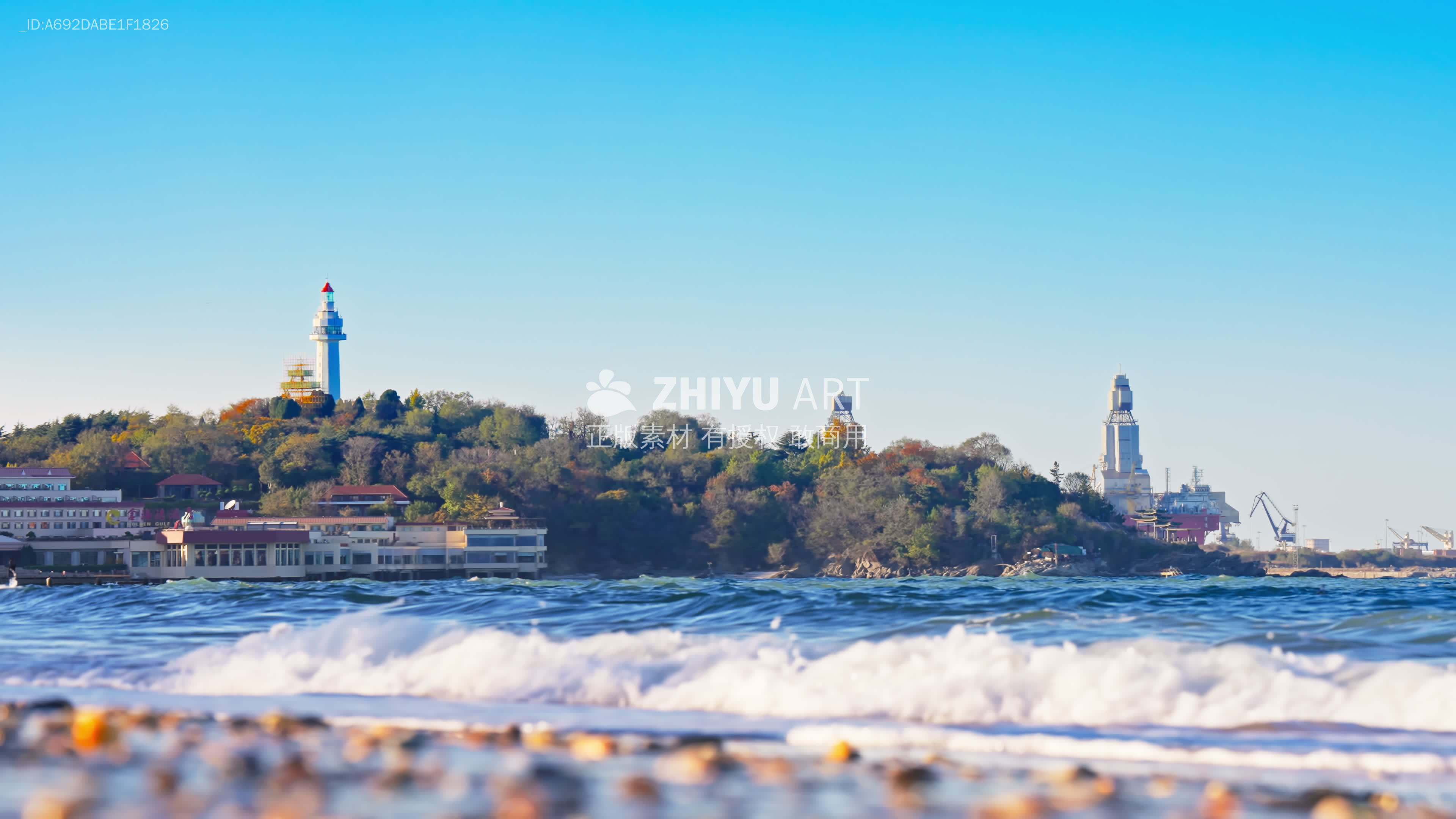 大海海洋沙滩焦石灯塔海岛海浪航拍