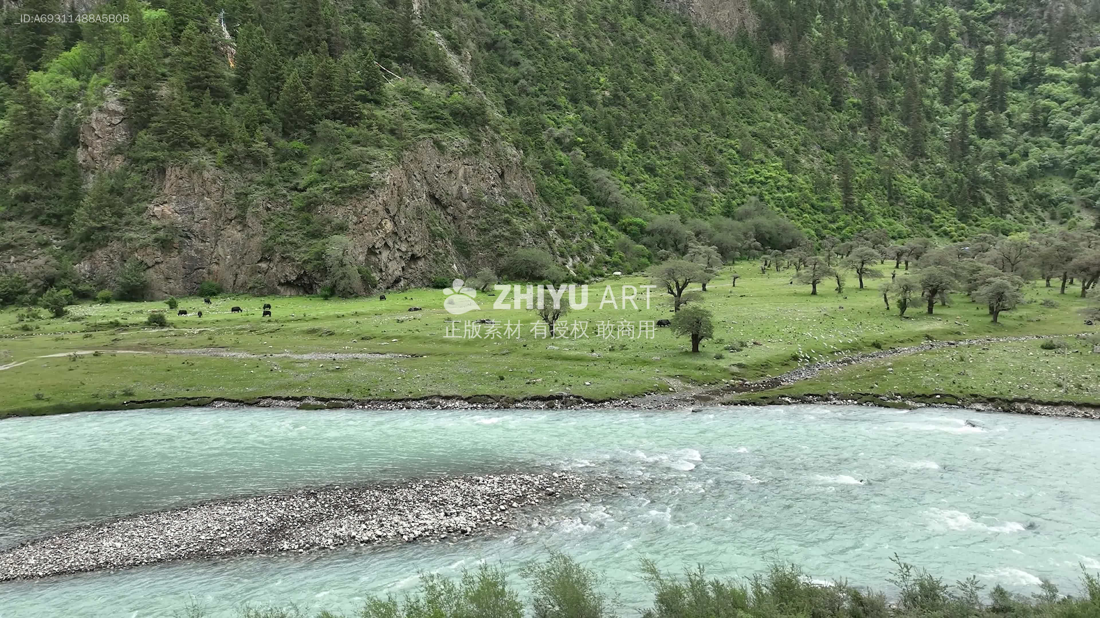高山峡谷河流沙棘林航拍