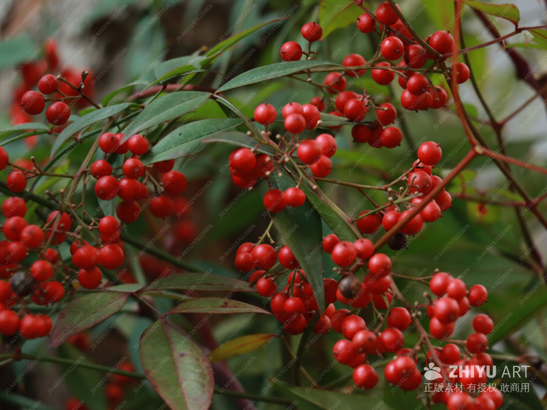 南天竹红果绿叶图