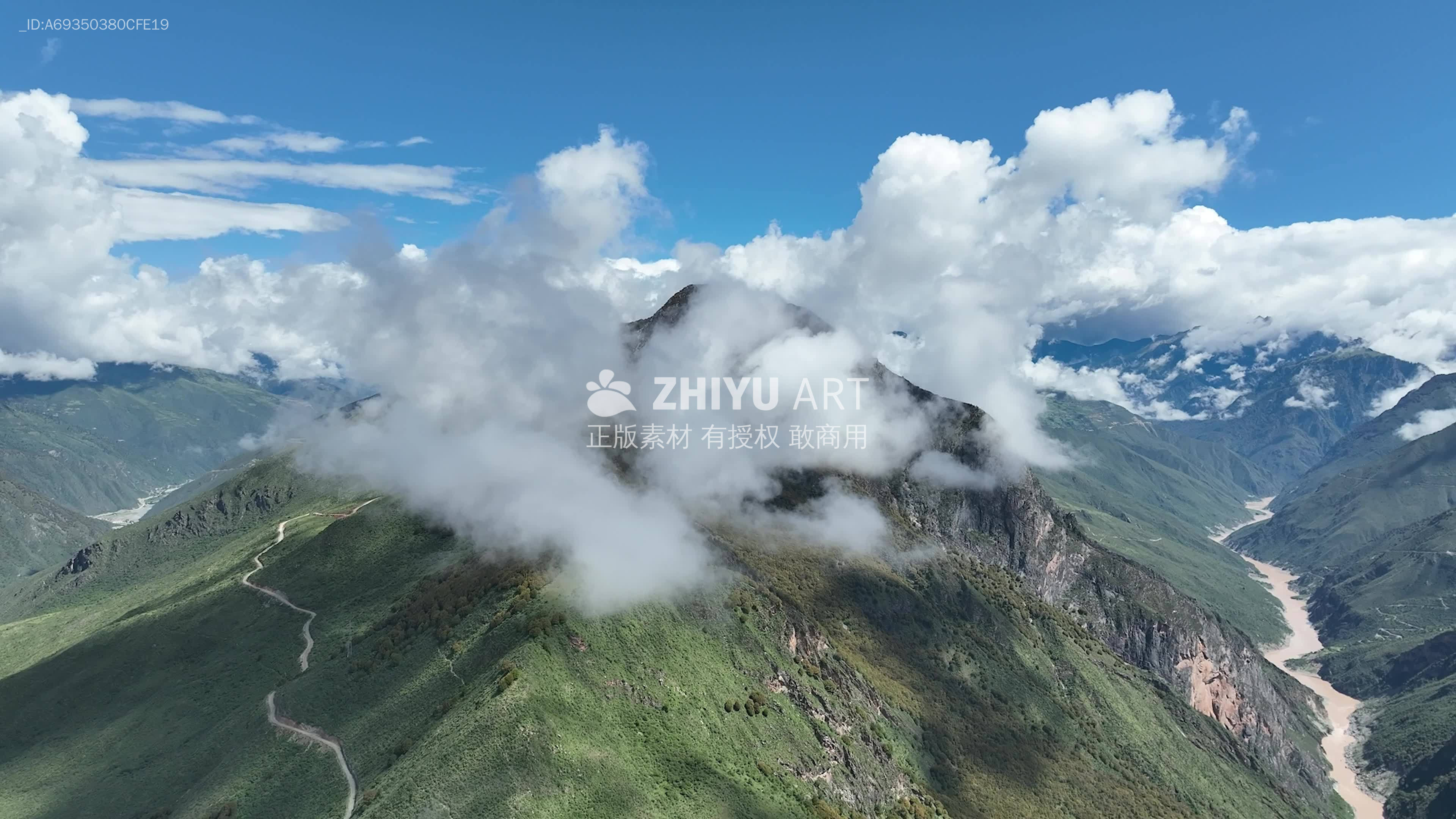 雄伟山脉云端环绕全景