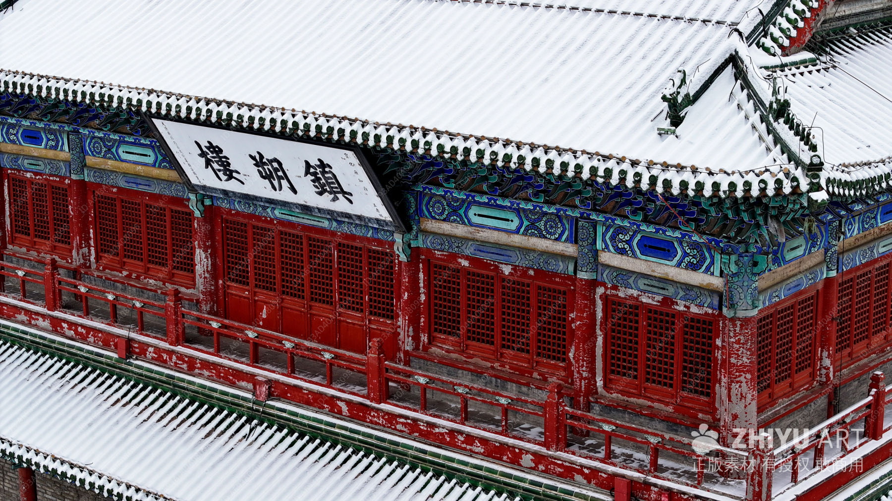 雪覆古建石雕景