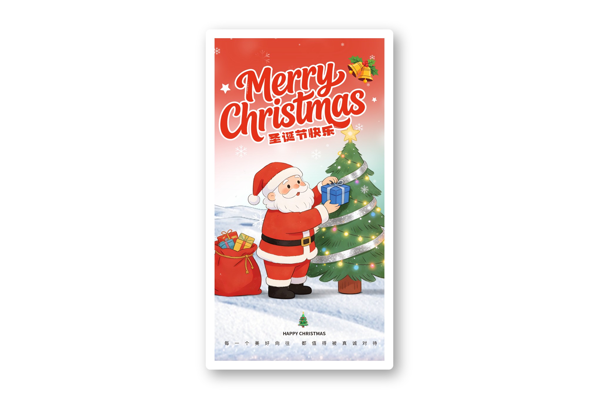 圣诞快乐节日海报素材氛围感卡通立体海报宣传