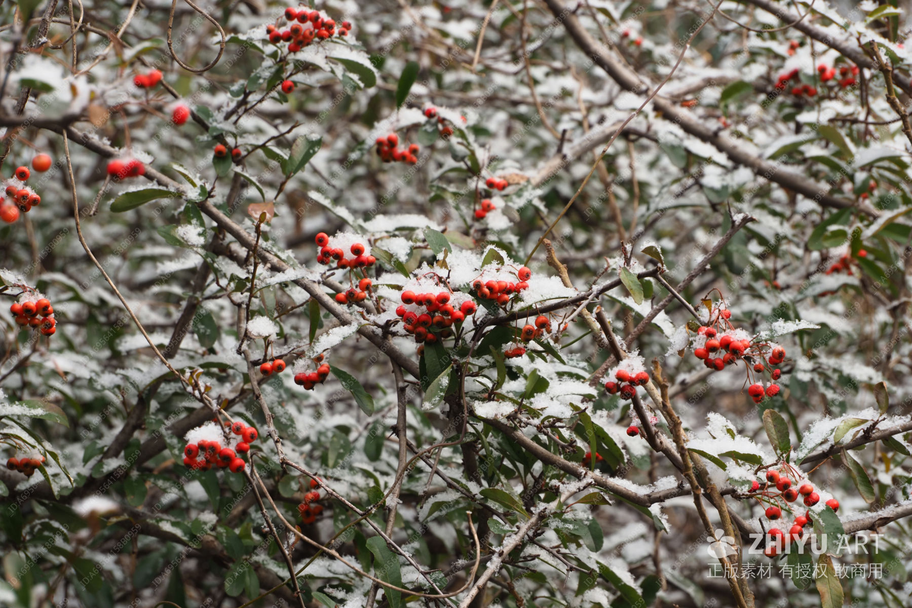 雪覆红果,冰挂枝头