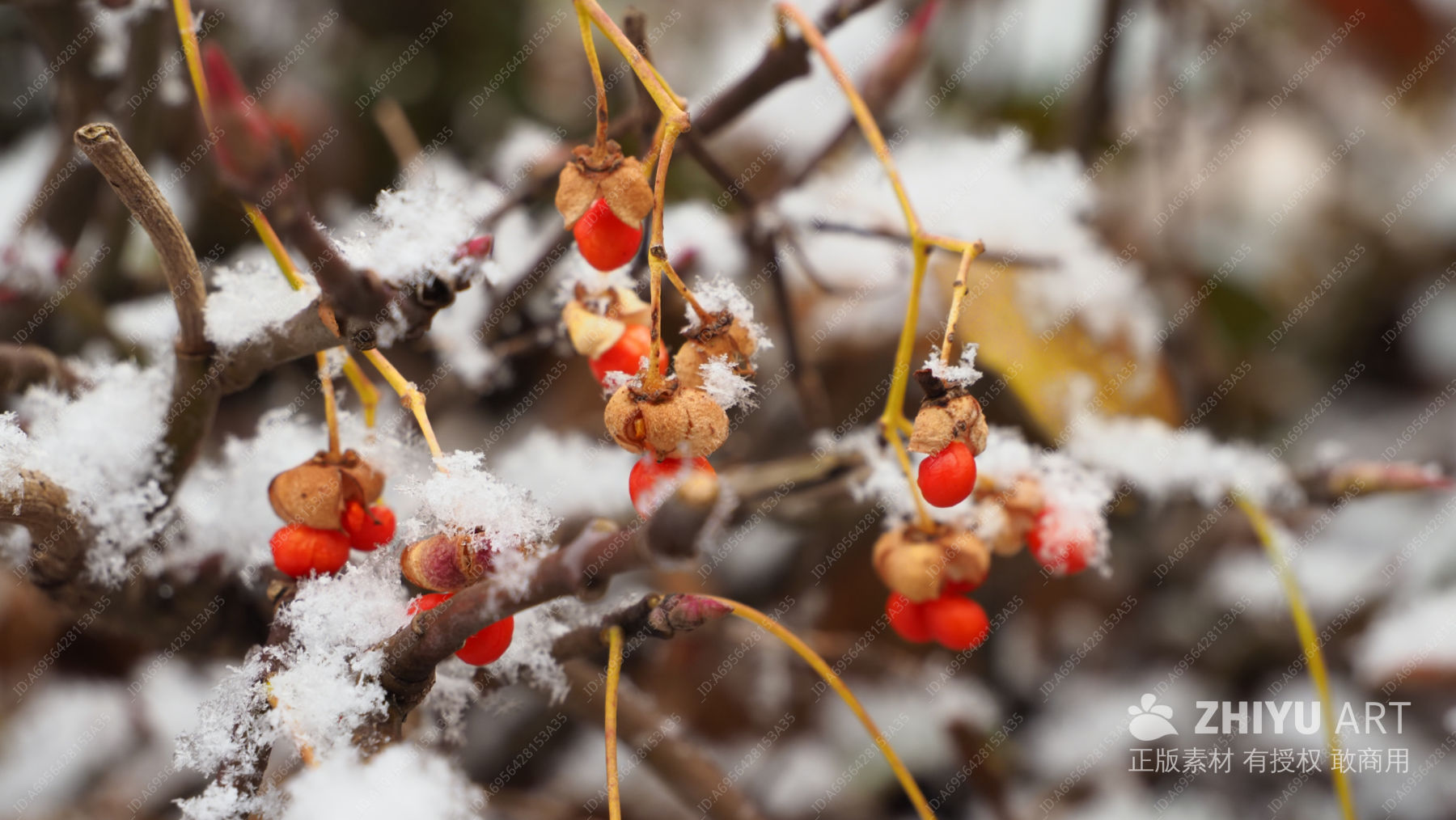 雪覆红果,冰挂枝头