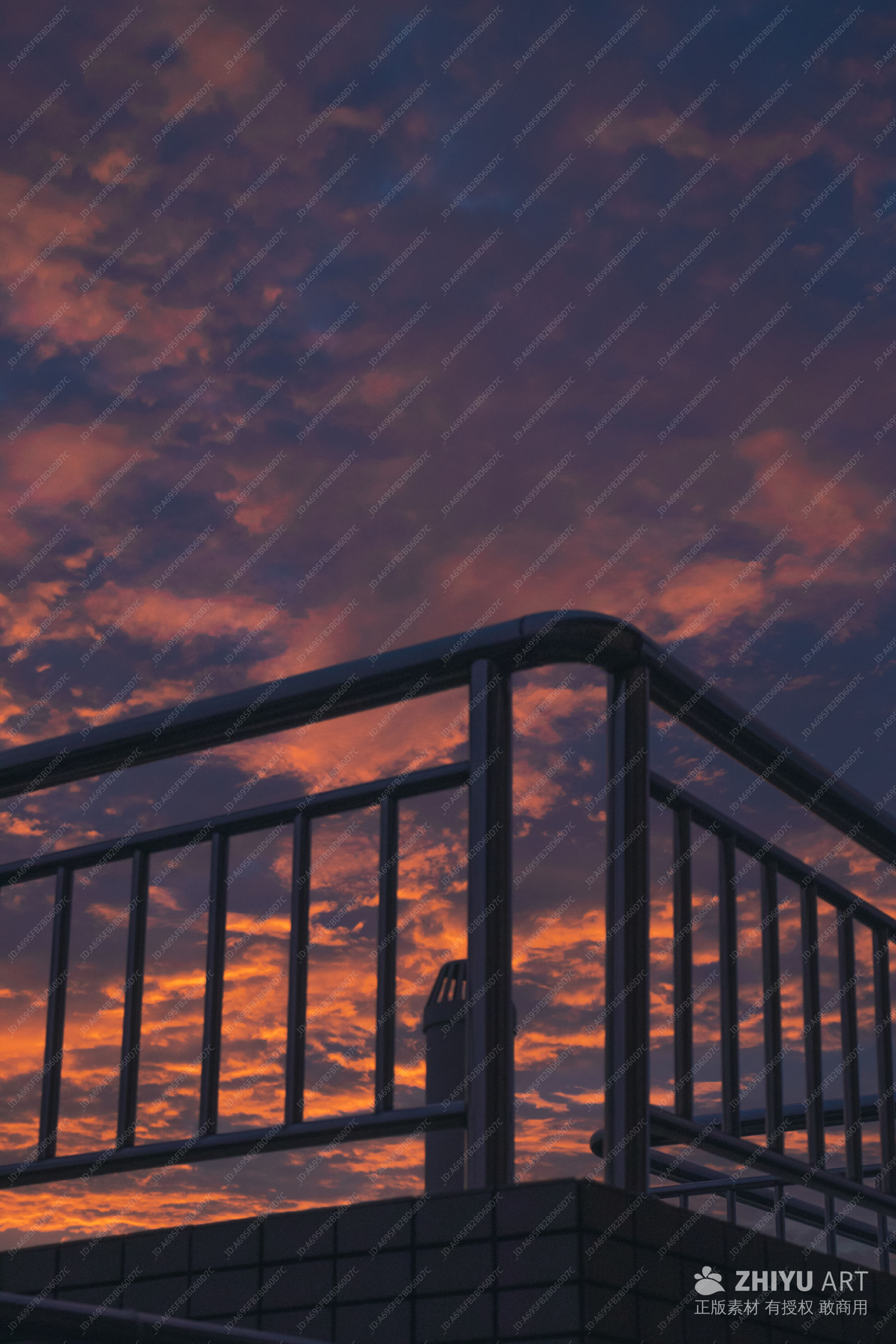 日落时分的栏杆与云彩