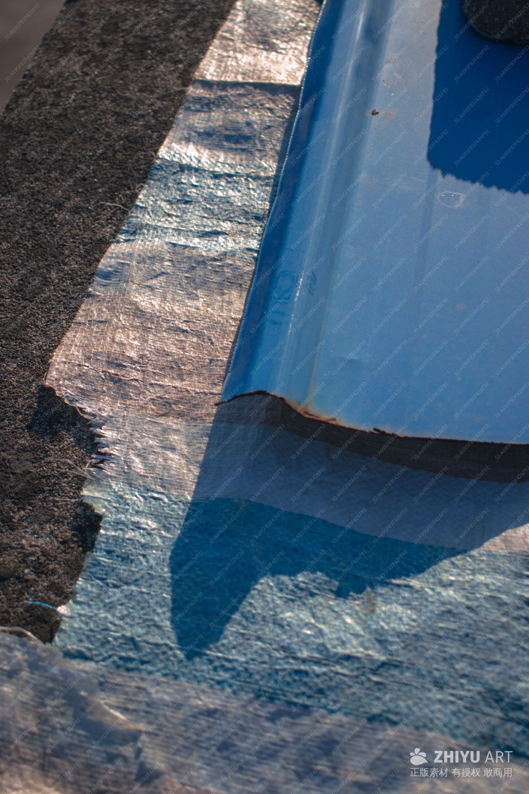 蓝色金属与防水布的质感特写