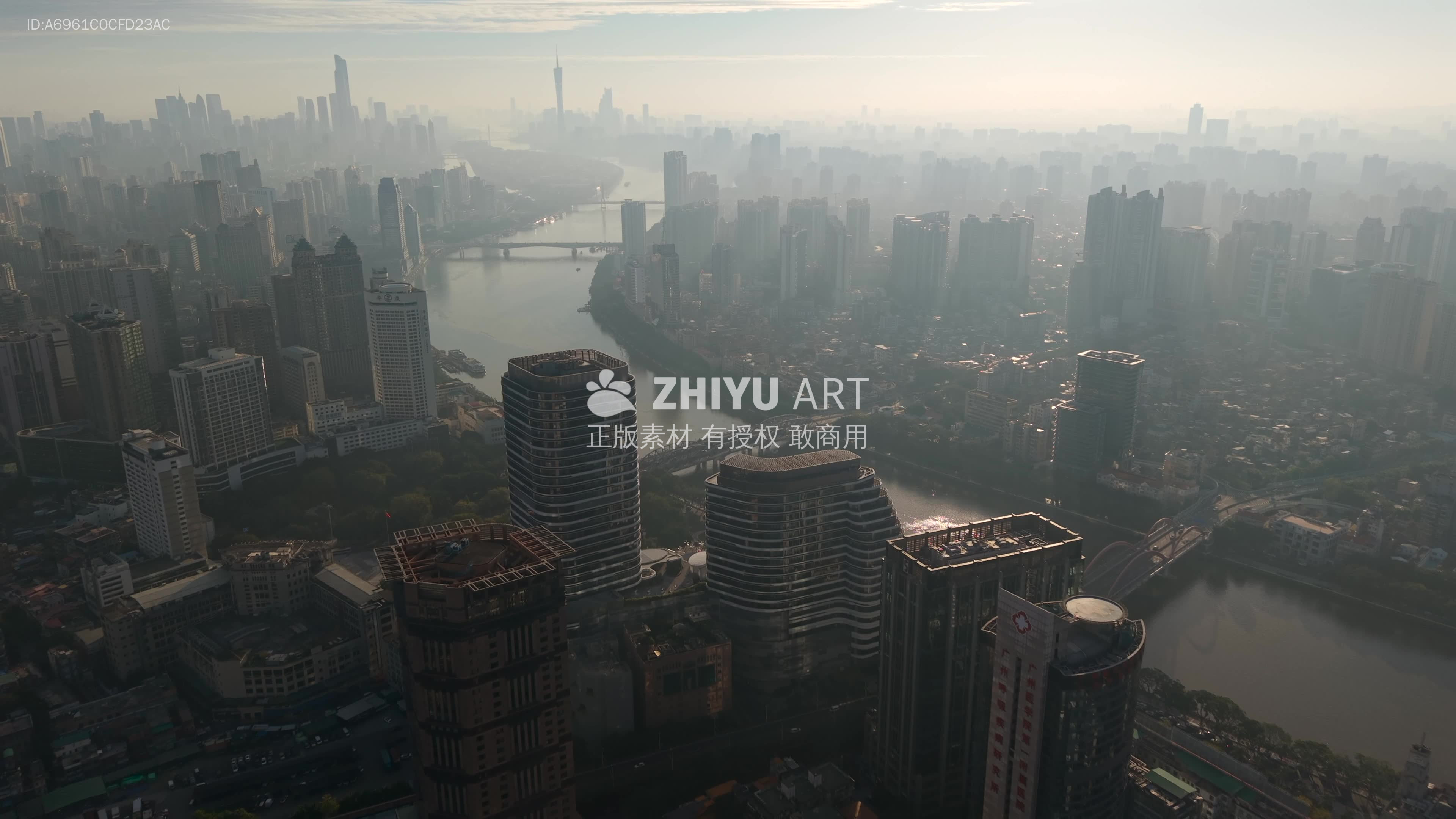 广州珠江晨雾航拍视频4K