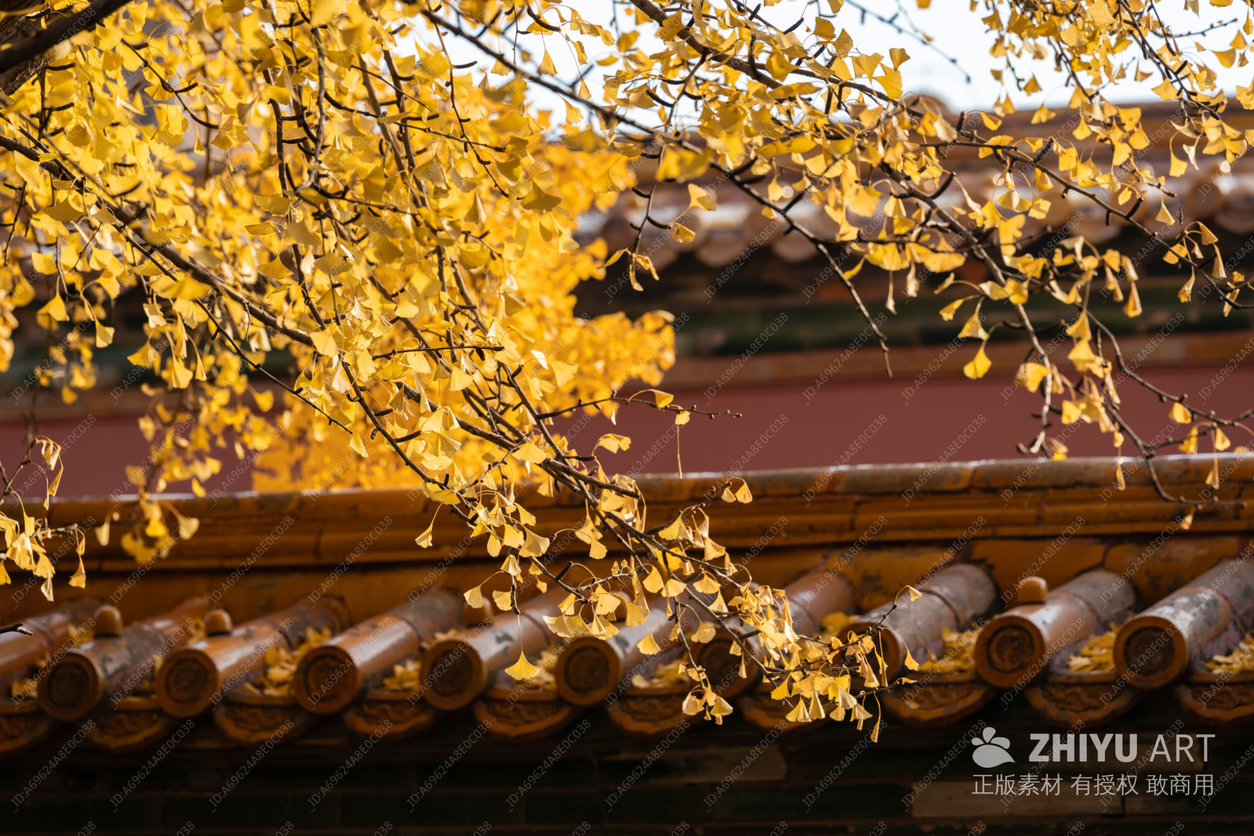 秋天的故宫红墙和银杏