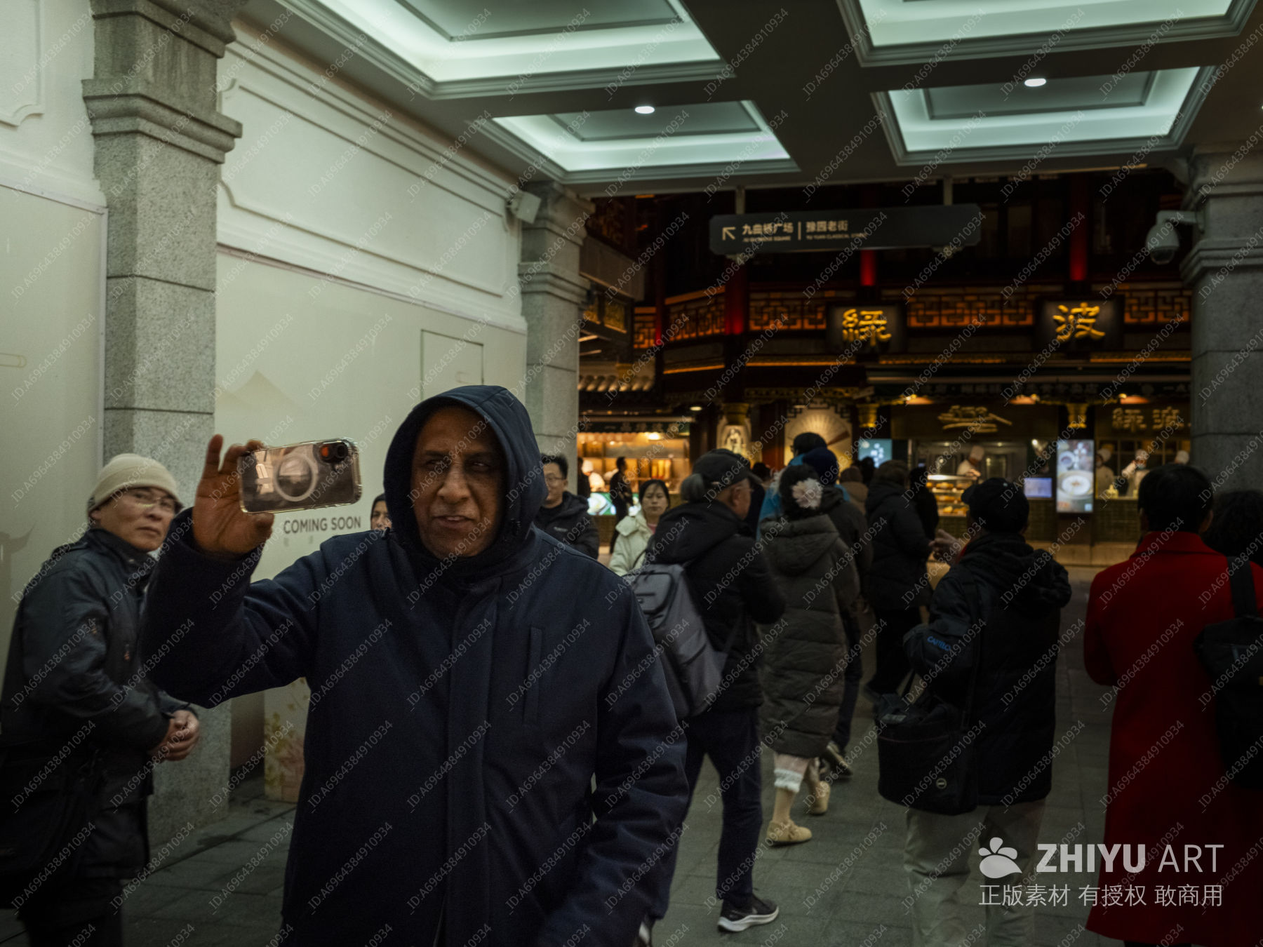 购物中心冬日排队场景