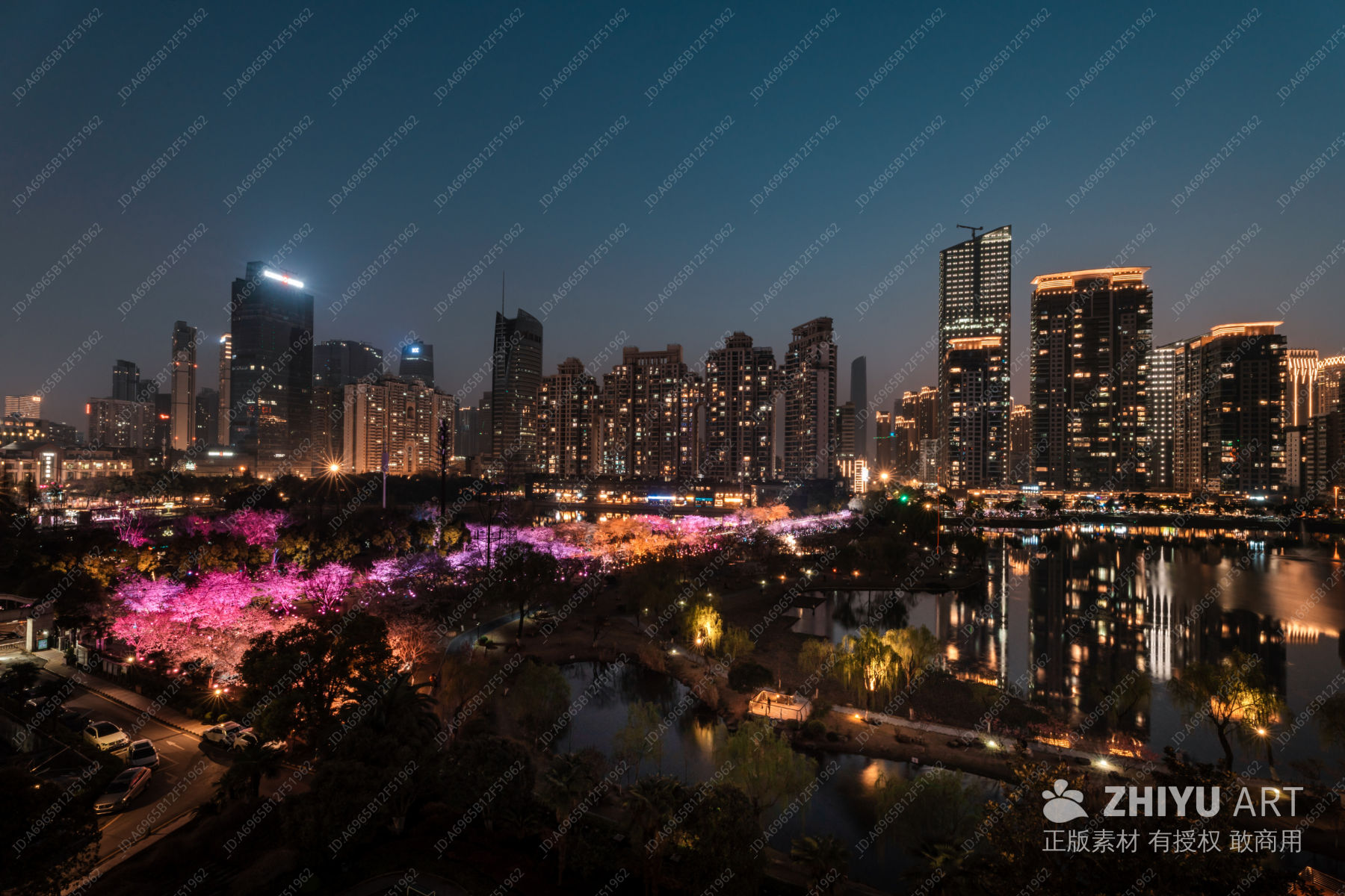 武汉西北湖樱花夜景