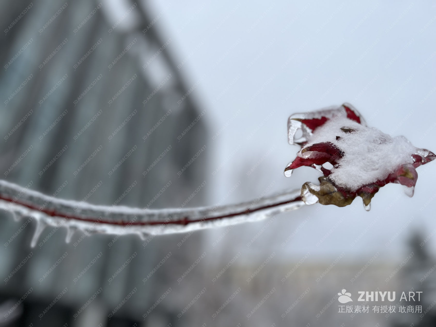 冬日红叶冰晶