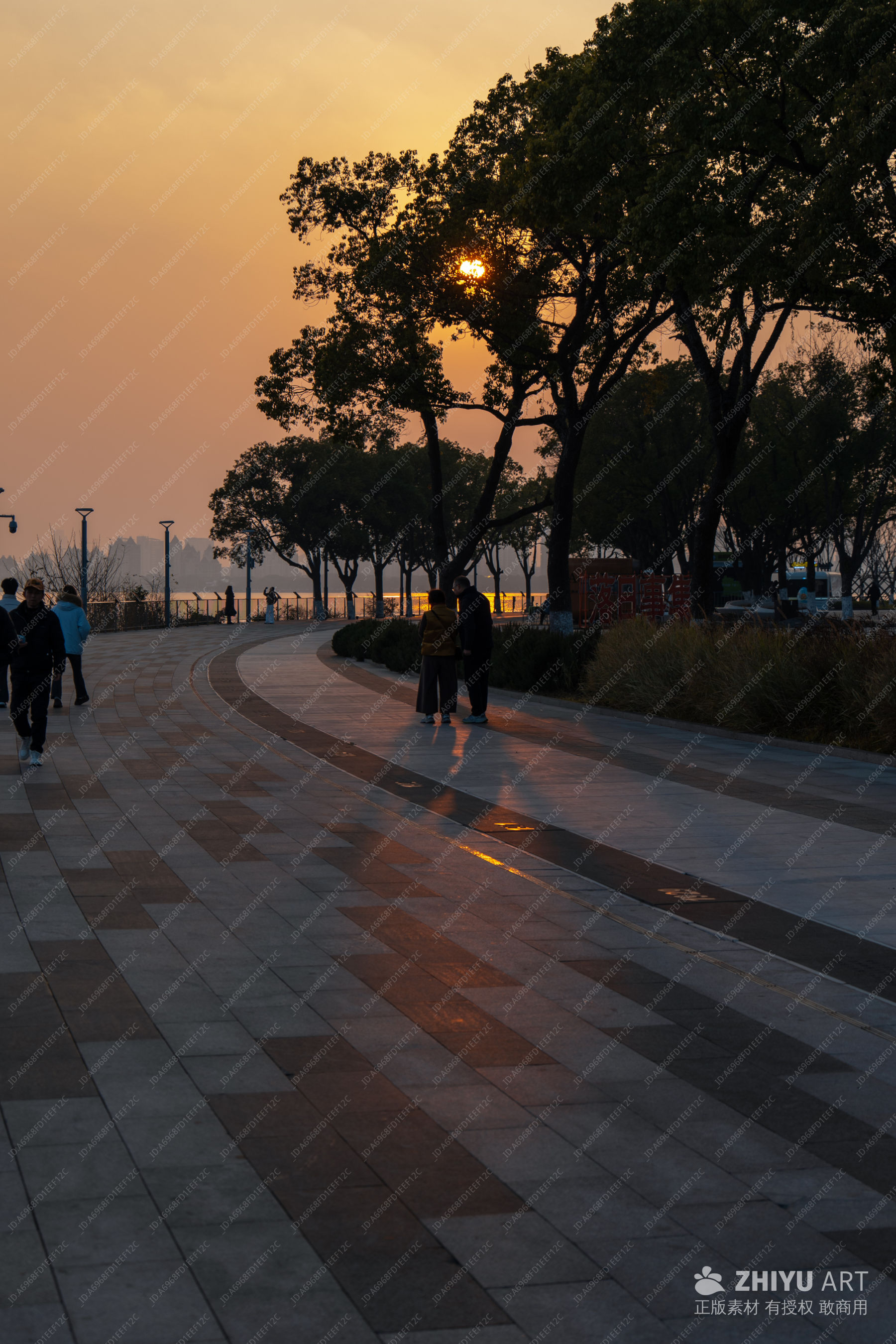 黄昏漫步:树影下的温馨时光