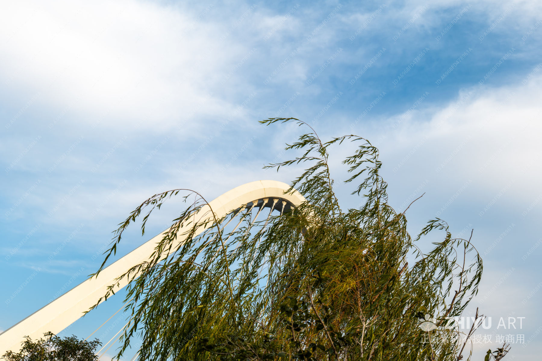 拱桥与柳树的静谧之美