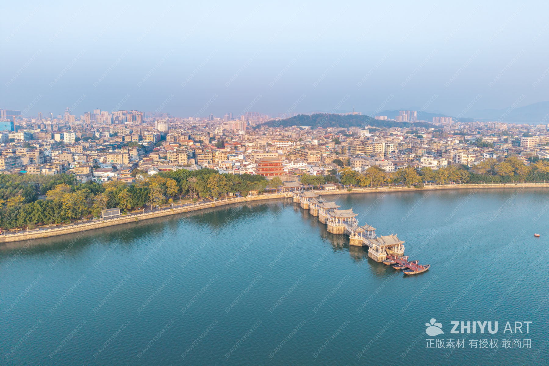 湖上古桥航拍美景