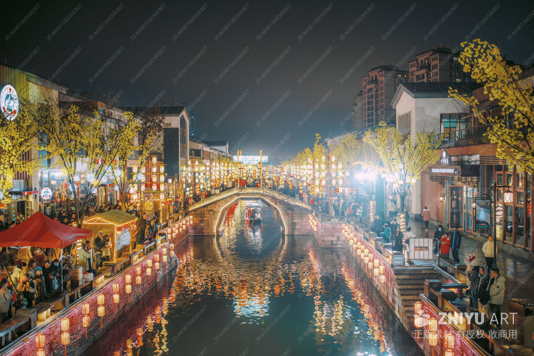 夜色中的古街与河流