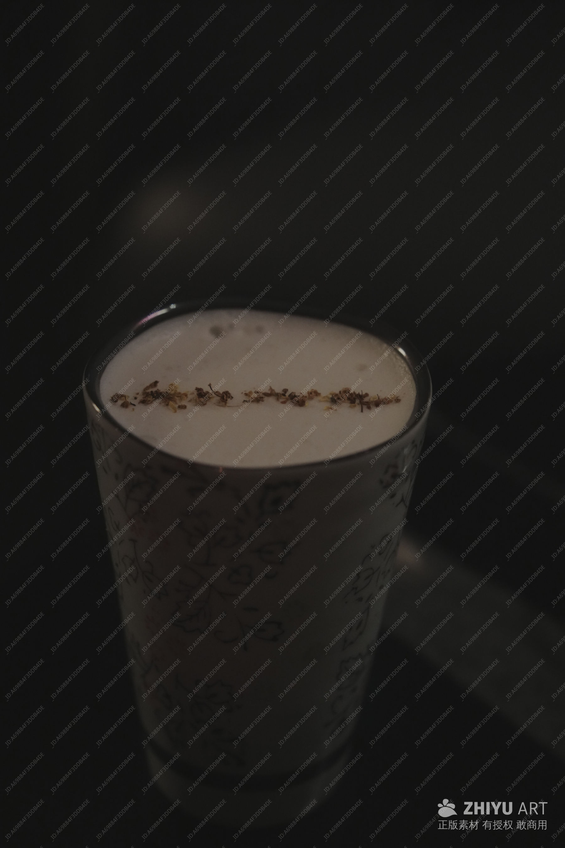 暗调饮品拉花特写