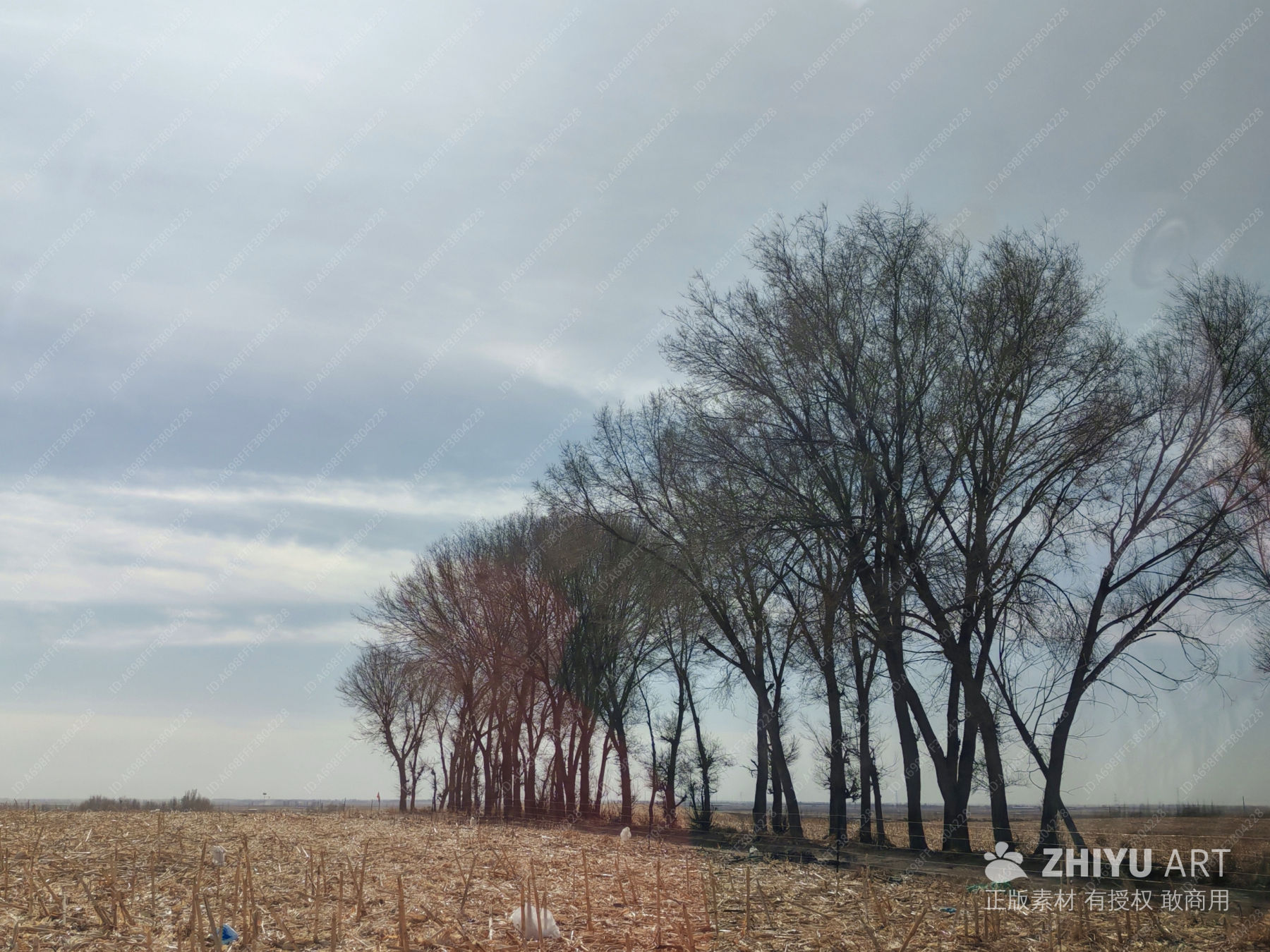 秋末的田野与枯树